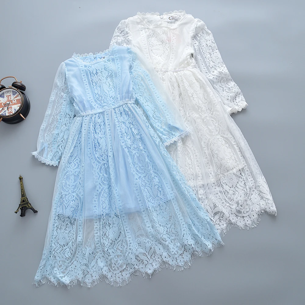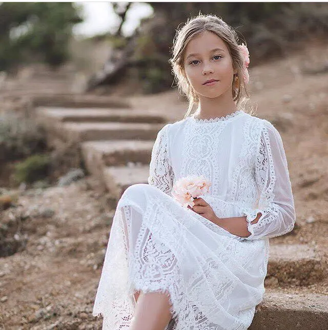 Special Offer 2019 nuevo vestido de moda para niñas, vestidos blancos de manga larga de encaje para niñas y niñas, ropa de boda para niñas, vestidos de noche para niñas Discount 29% Today!