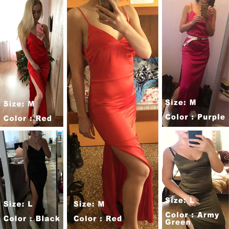 Special Offer Forefair Sexy Maxi Vestido de satén verano mujeres corte cuello en V alta cintura de hombro negro rojo Slip seda vestido largo Fiesta Club Discount 35% Today!
