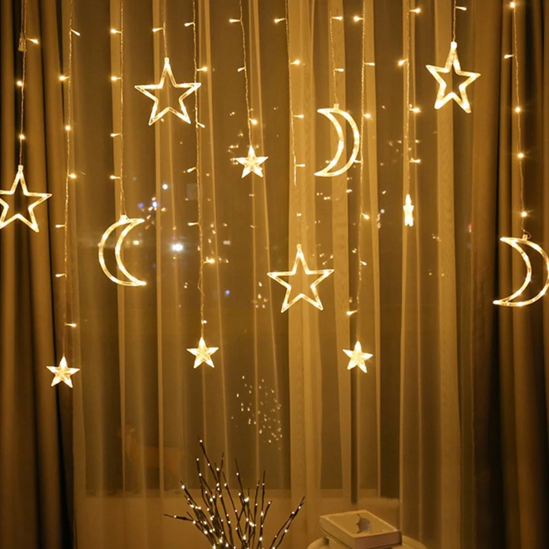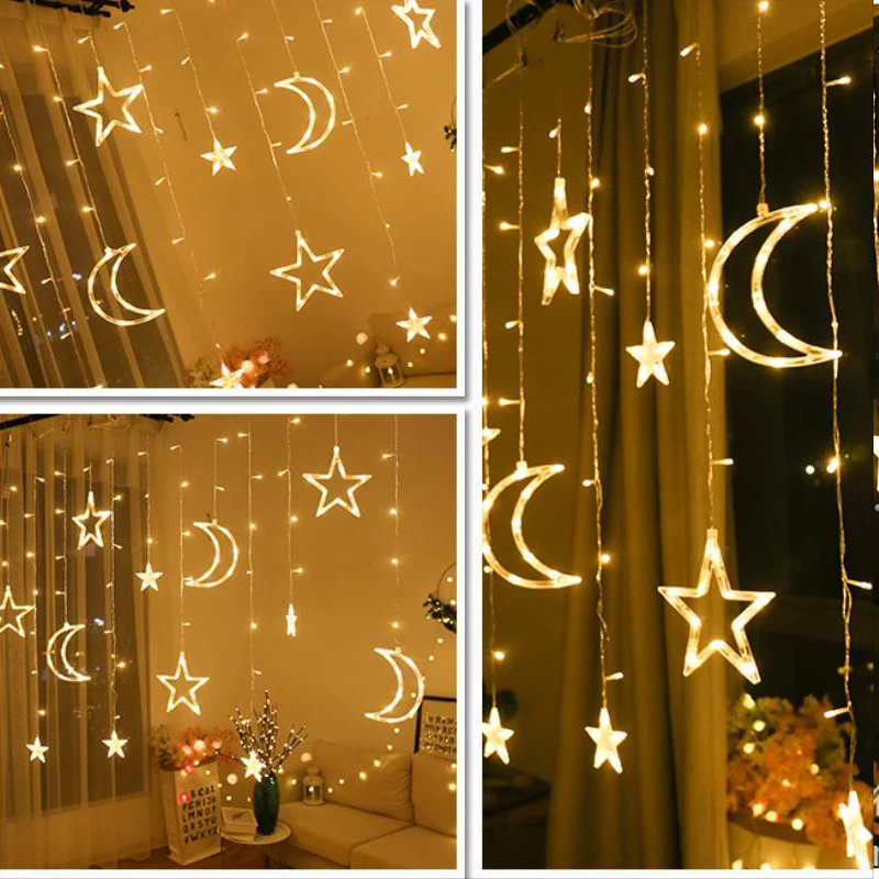 . (35% Off) Comprar Luna estrella Navidad guirnalda LED cortina cadena Icicle luz UE 220 V 3,5 m interior LED fiesta jardín escenario exterior luz decorativa Online Baratos.