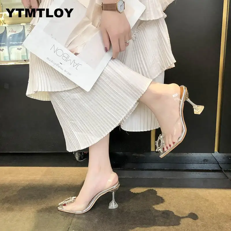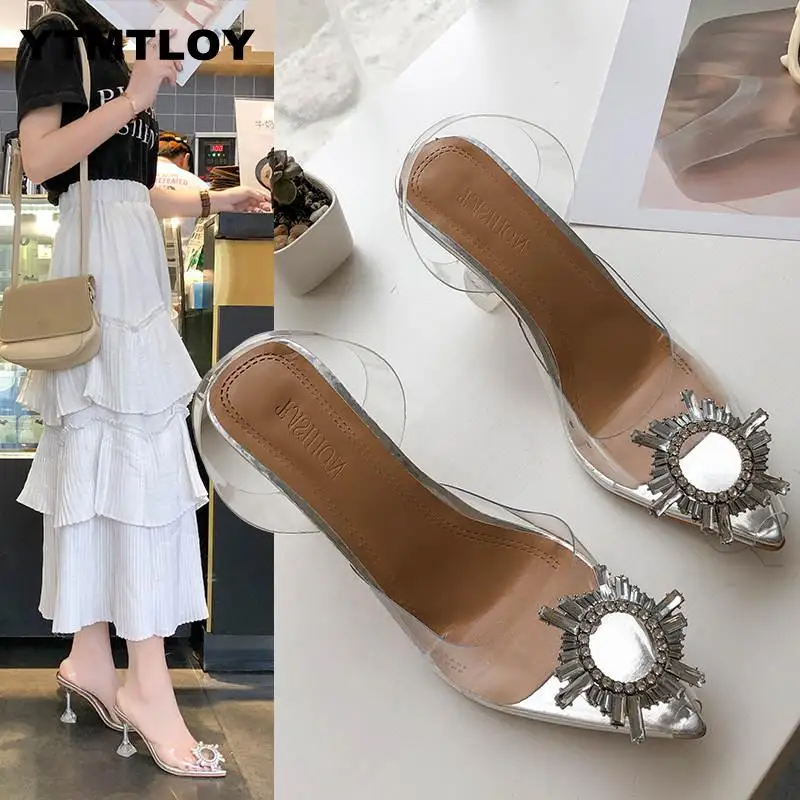 Special Offer Bombas de lujo para mujer 2019 tacones altos transparentes Sexy puntiagudos deslizantes zapatos de moda de marca de fiesta de boda para mujer pvc Discount 36% Today!