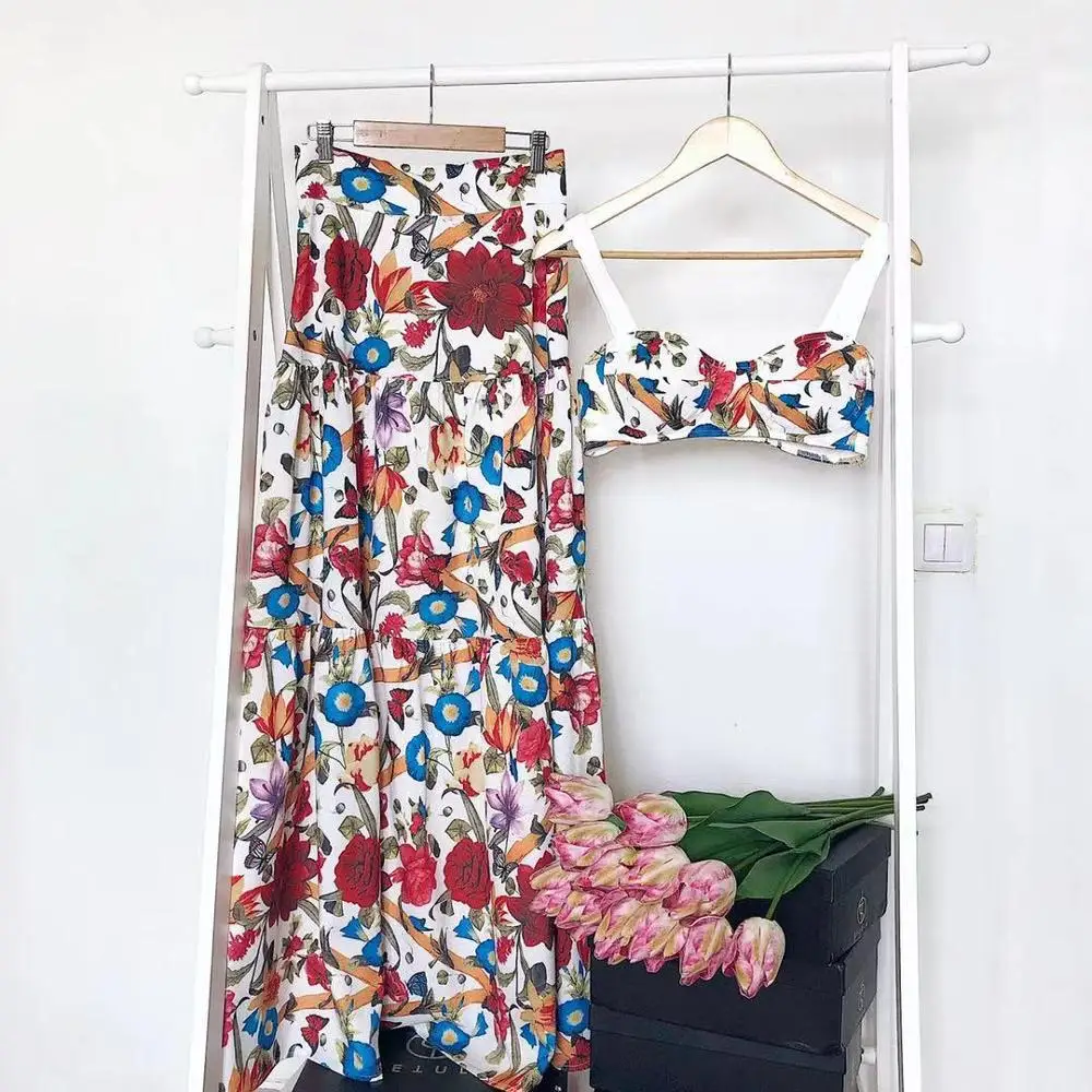Special Offer Verano floral maxi Vestido mujer estilo bohemio sin mangas 2 piezas conjunto vestidos ropa mujer boho chic Vestido de playa de talla grande Discount 38% Today!