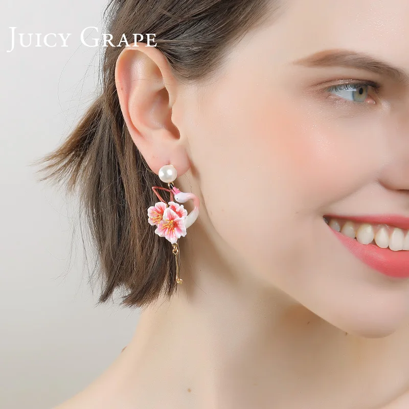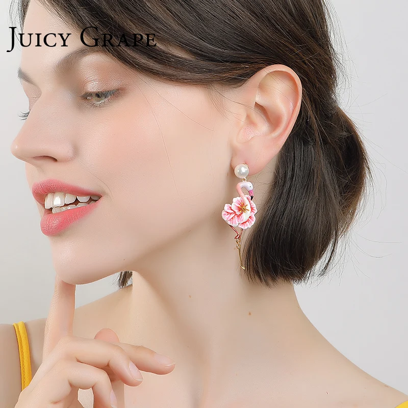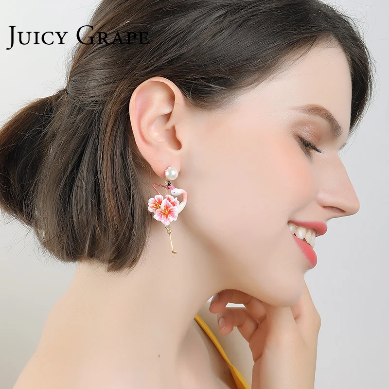 Special Offer Juicy uva flor flamencos pendientes mujeres perla stud pendientes temperamento resort viento pendientes sin agujero de oreja clip en pendientes Discount 40% Today!