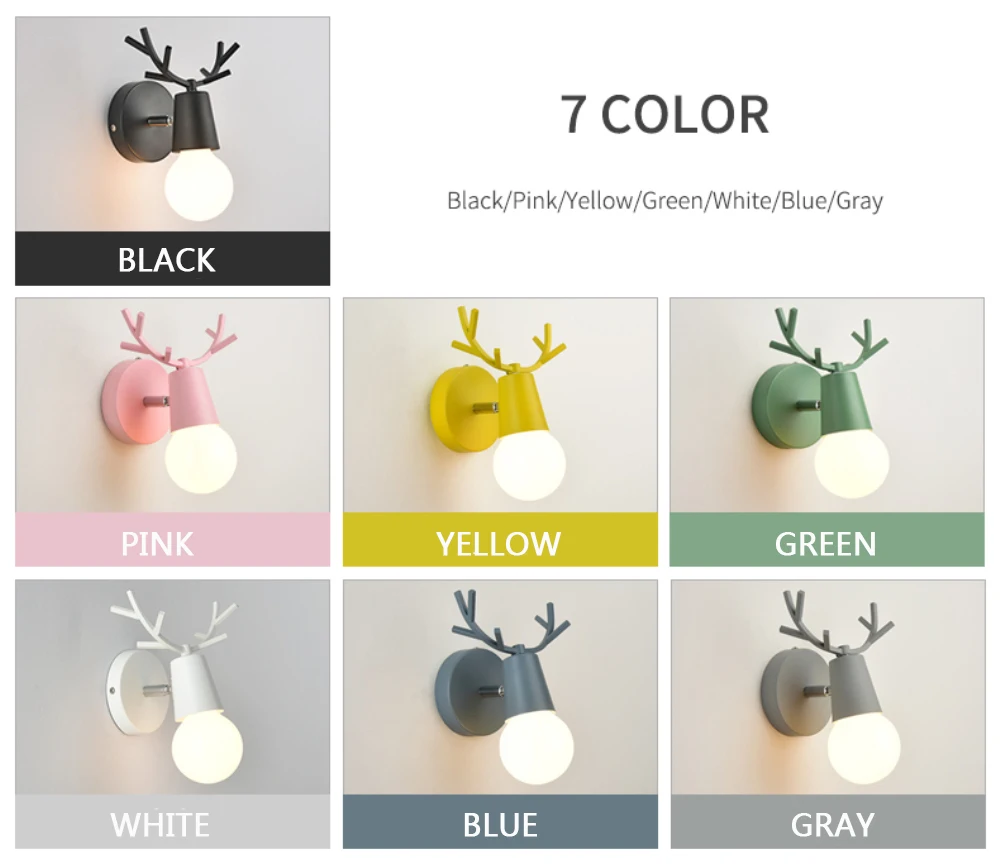 . (40% Off) Comprar Luces de pared LED ajustables nórdicas coloridas de dibujos animados ciervos astas dormitorio lectura Sconce montado en la pared iluminación de la habitación de los niños E27 Online Baratos.
