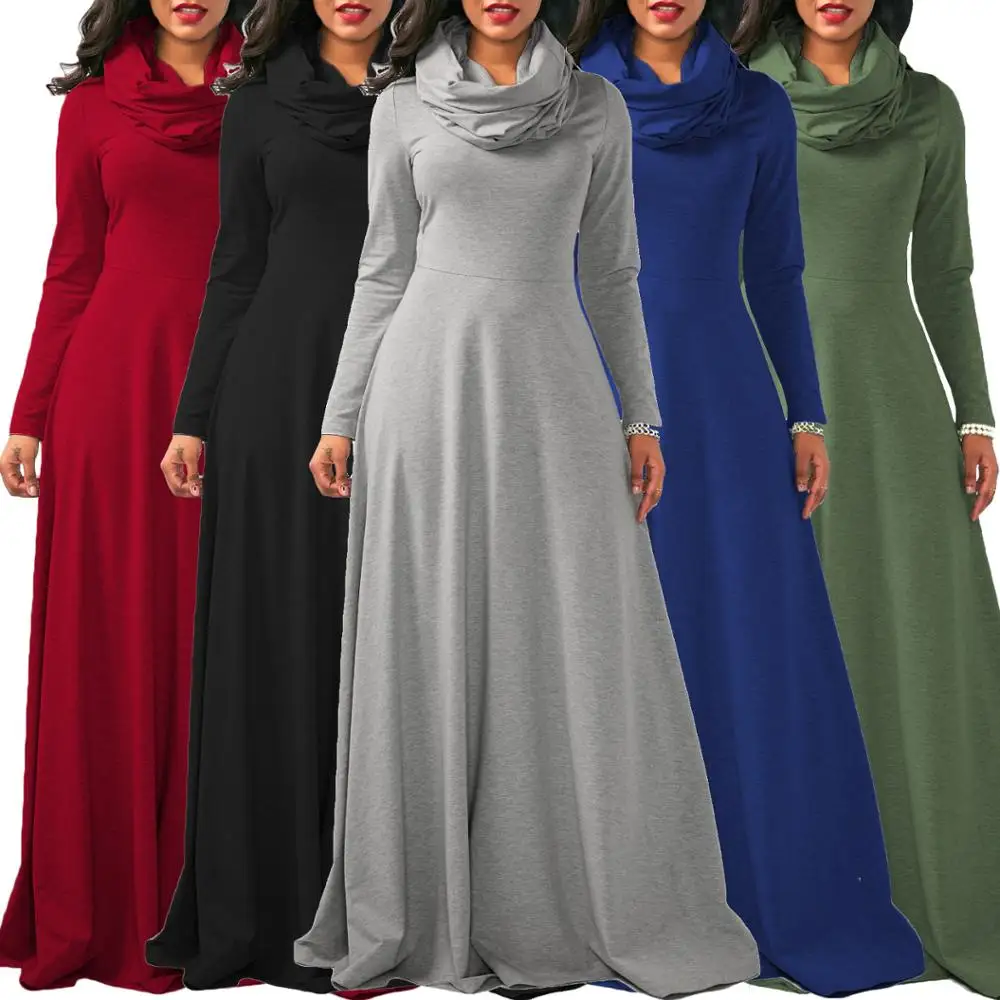 . (41% Off) Comprar Cálido otoño invierno Vestido Mujer Casual manga larga cuello alto una línea mujeres vestido elegante Delgado largo Maxi vestido bata Mujer Vestidos Online Baratos.