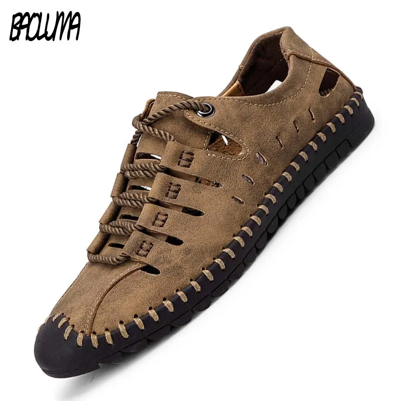 . (44% Off) Comprar Sandalias de hombre de cuero genuino de verano de alta calidad sandalias de playa zapatillas zapatos de hombre Zapatos casuales con cordones al aire libre zapatos masculinos 38 48 Online Baratos.
