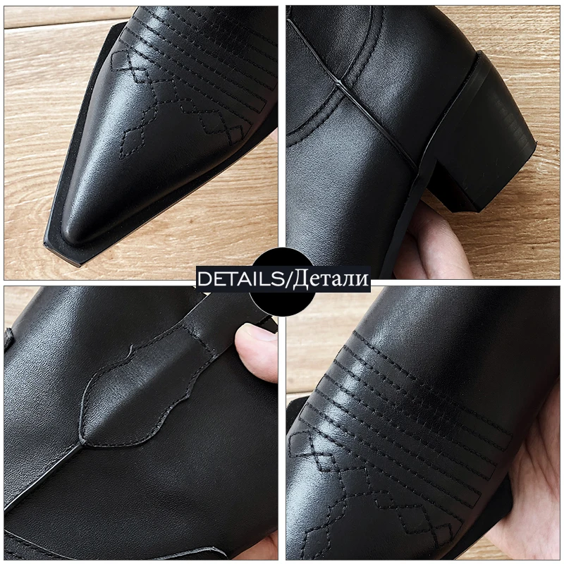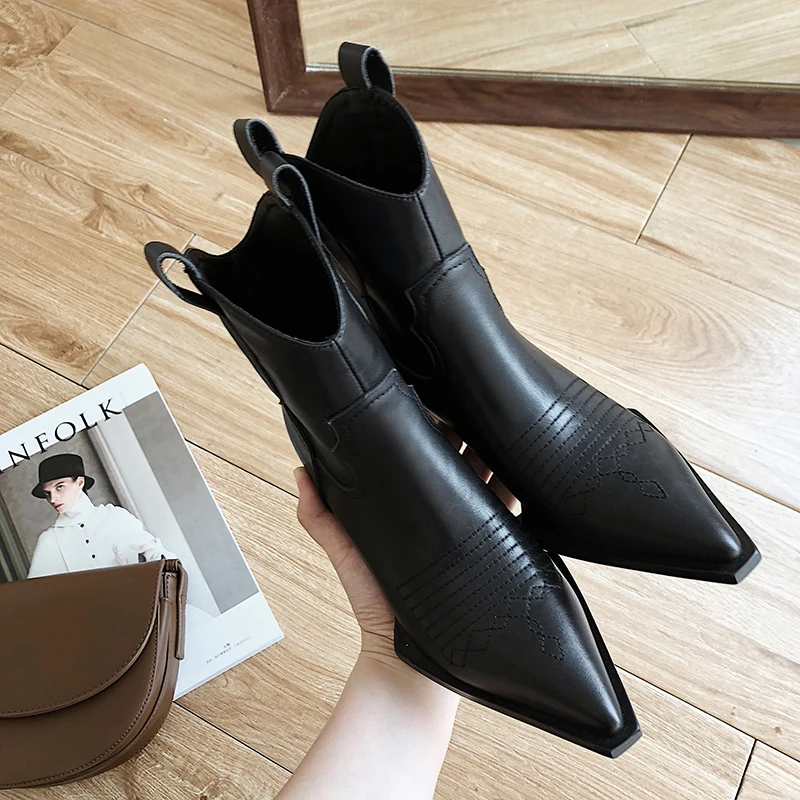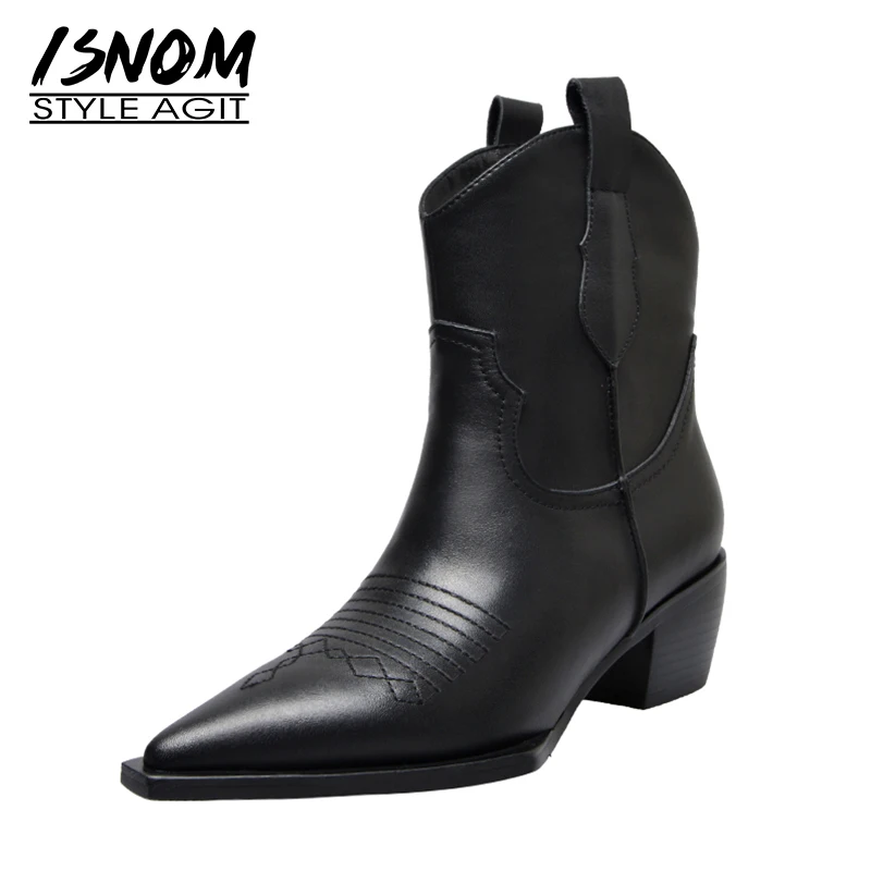 Special Offer Botas al tobillo occidentales de isname, botines de vaquero para mujer, zapatos de punta puntiaguda para mujer, zapatos de cuero de tacón grueso, para mujer, otoño Discount 45% Today!