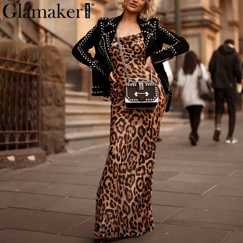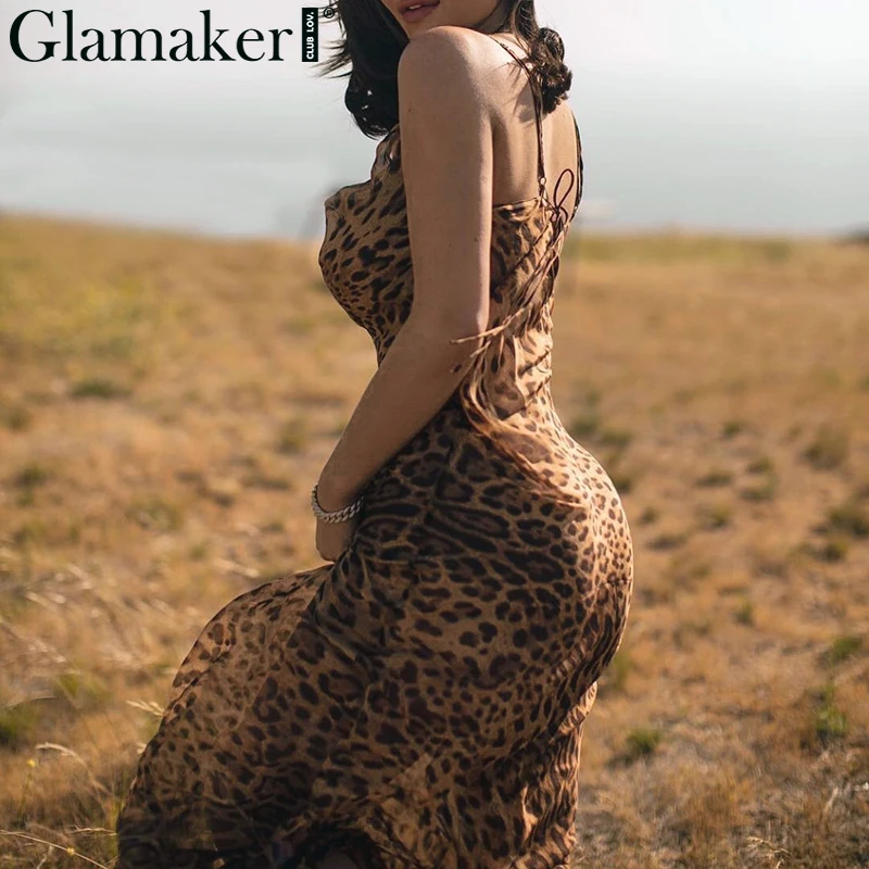 Special Offer Glamaker estampado de leopardo sexy vestido Maxi bodycon mujer verano chifón playa vestido de verano elegante vintage femenino club largo vestido de fiesta Discount 49% Today!