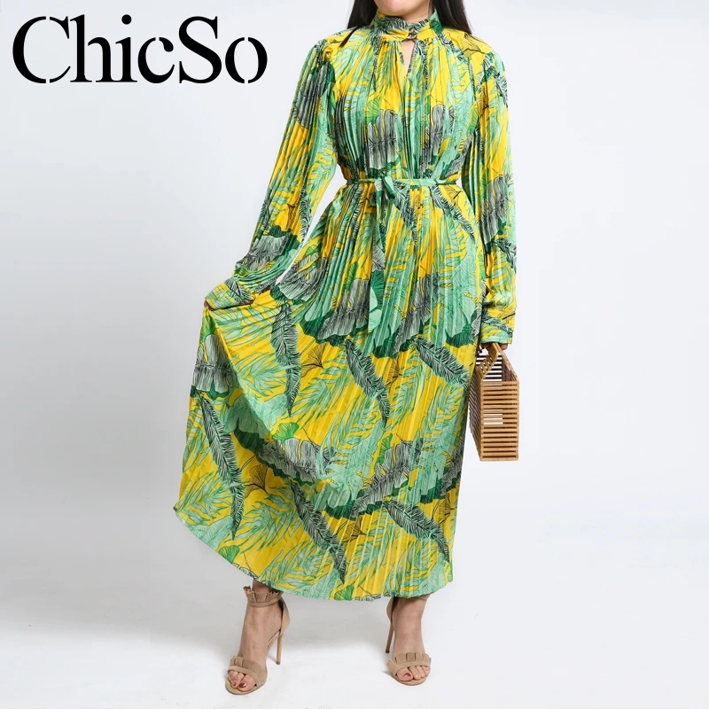 Special Offer MissyChilli plisado floral de gasa de manga larga vestido de mujer elegante verde midi vestido de fiesta de Navidad de Invierno para mujer Discount 49% Today!