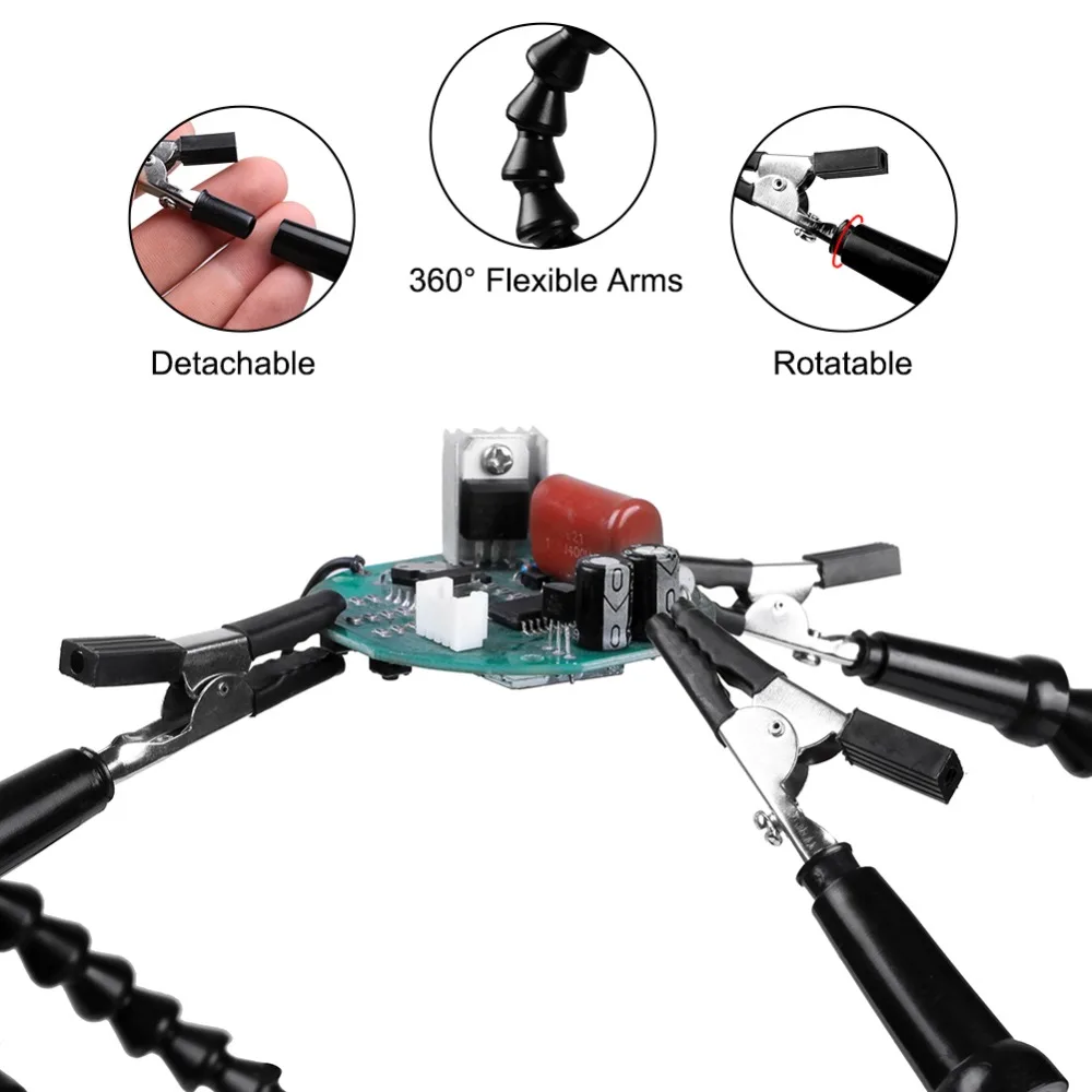 . (50% Off) Comprar Newacarax USB LED 3X gafas lámpara de lupa DIY soldadura de tercera mano 4 piezas brazos flexibles de soldadura ayuda soporte herramienta de reparación Online Baratos.