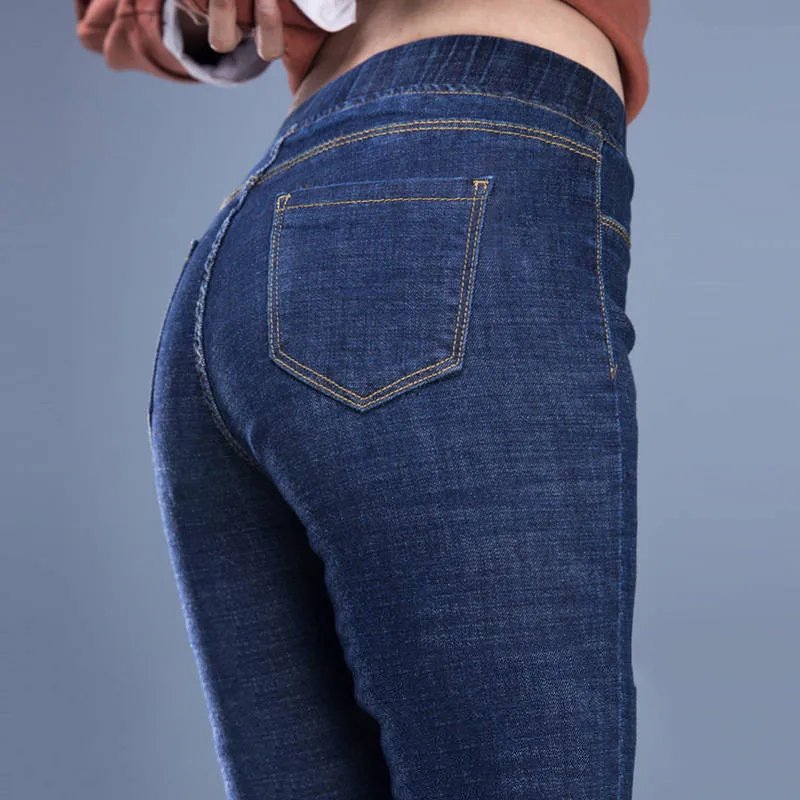 Special Offer Pantalones de tubo ajustados básicos para mujer vintage pantalones vaqueros elásticos de talla grande vaqueros de mamá elásticos vaqueros de novio para mujer Discount 50% Today!