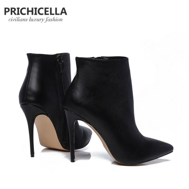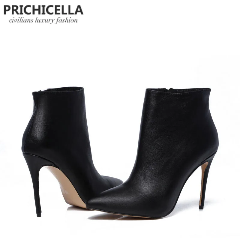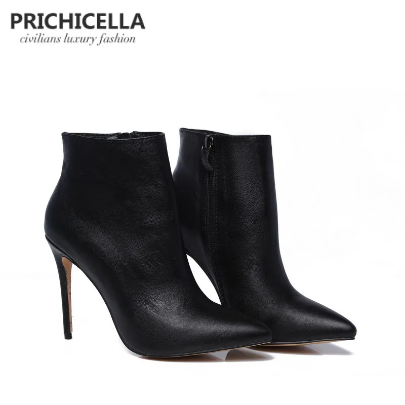 Special Offer PRICHICELLA calidad mujer cuero genuino invierno botas puntiagudas negro stiletto tacones tobillo botines size34 42 Discount 0% Today!