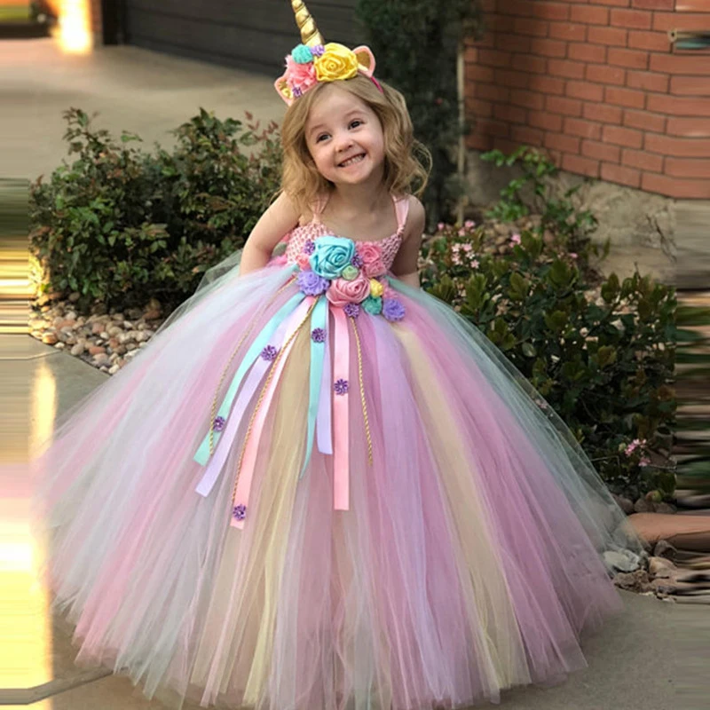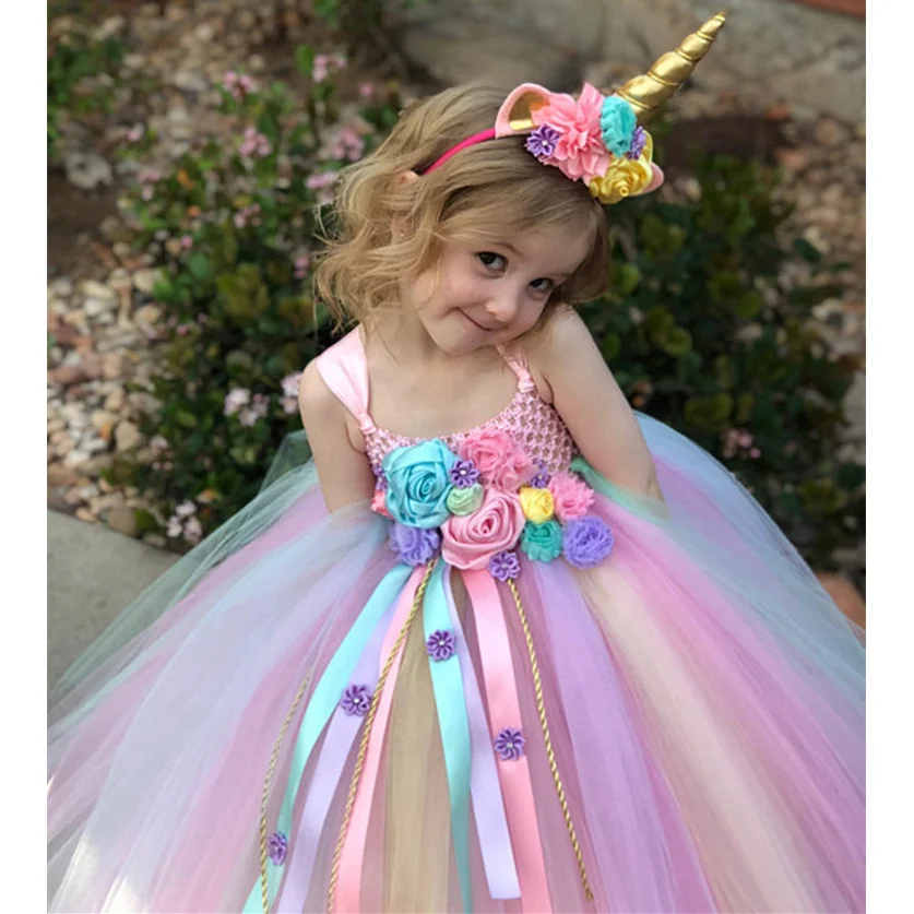 Special Offer 2019 vestido de unicornio para niñas vestido tutú de flores para niños vestido de fiesta con tiras de tul para niños + sombreros 2 uds. Discount 25% Today!