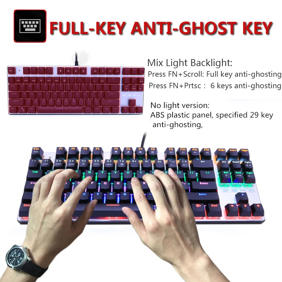 Special Offer Teclado mecánico para juegos con cable interruptor rojo azul 87 104 teclas Anti ghosting ruso EE. UU. LED retroiluminado para ordenador portátil Gamer Discount 25% Today!
