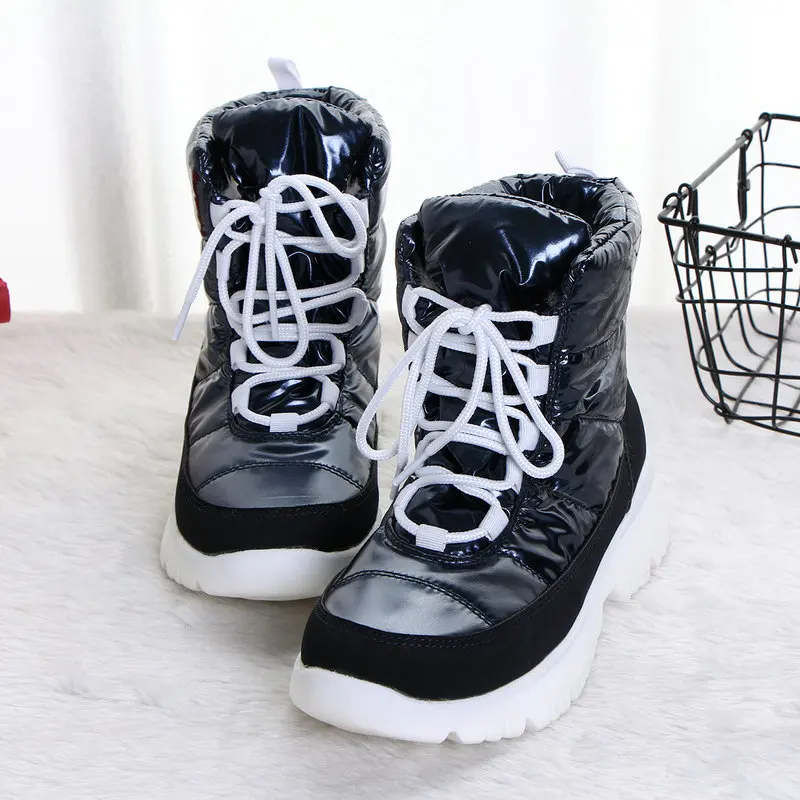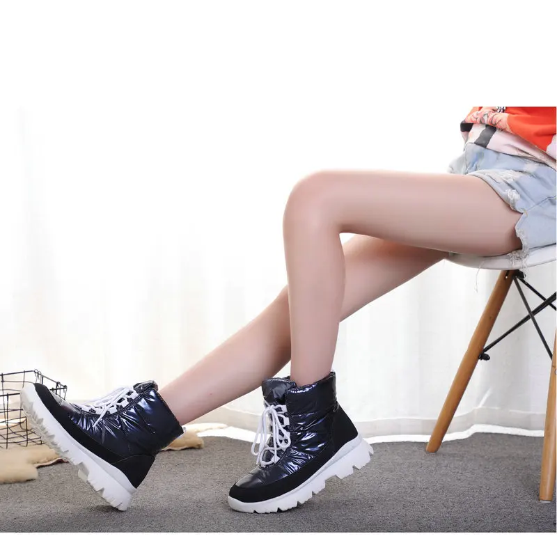 Special Offer 2019 nuevas botas de nieve para mujer botas de invierno calientes botas cortas de color azul marino inferior suela antideslizante 50% lana natural con cordones envío gratis caliente Discount 30% Today!