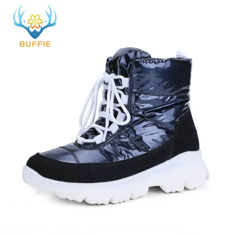 . (30% Off) Comprar 2019 nuevas botas de nieve para mujer botas de invierno calientes botas cortas de color azul marino inferior suela antideslizante 50% lana natural con cordones envío gratis caliente Online Baratos.