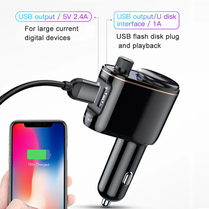 . (30% Off) Comprar Baseus coche transmisor FM Bluetooth Kit manos libres coche doble salida USB con expansión de encendedor Puerto Audio reproductor MP3 Online Baratos.