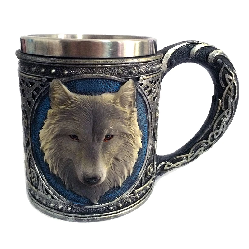 Special Offer Taza de lobo 3D dibujo Animal Lobo Solitario rey beber taza Retro resina Acero inoxidable forro té cerveza taza de café regalo Discount 30% Today!