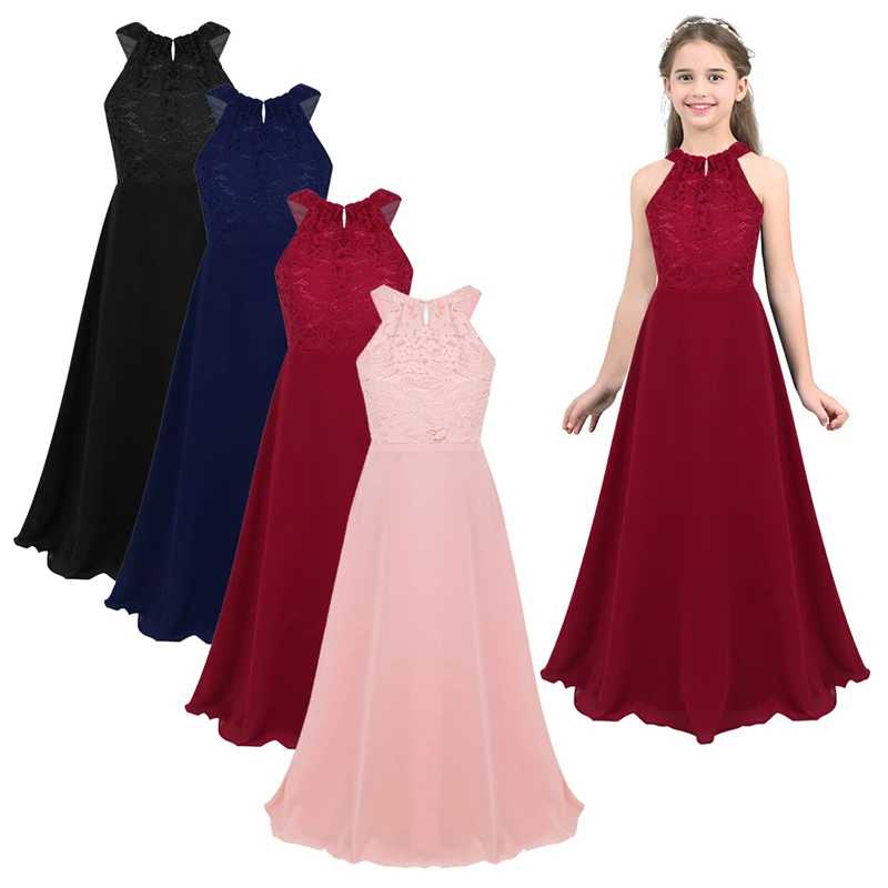 Special Offer Vestido de chifón de encaje Floral con recorte en la parte trasera vestido de princesa elegante de la boda de la dama de honor vestido de fiesta de cumpleaños Discount 31% Today!