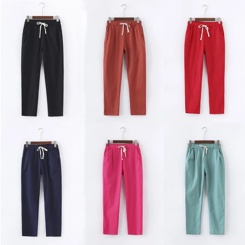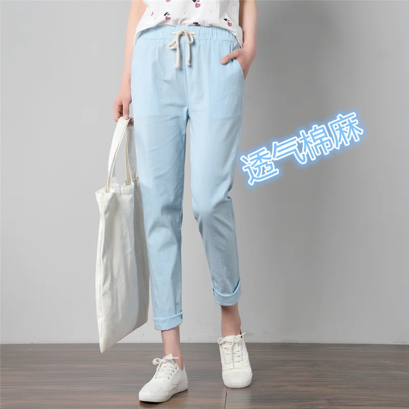 Special Offer 13 colores mujer pantalones nuevos algodón Lino verano Pantalones elásticos cintura alta coreano Capris pantalones Harem ligeros de talla grande Discount 40% Today!