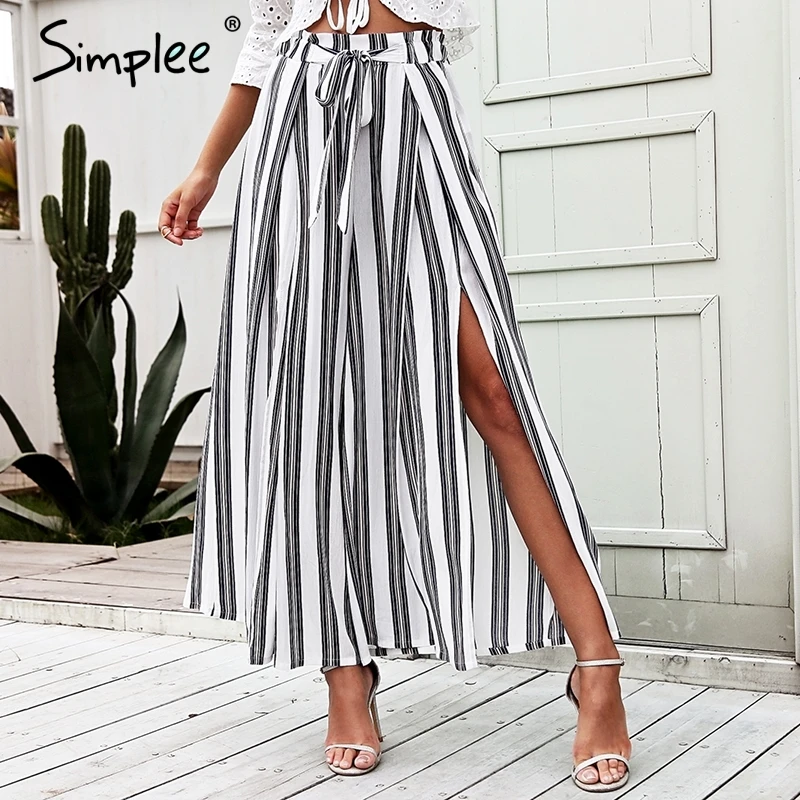 Special Offer Simplee dividido a rayas señora pantalones de pierna ancha mujer verano playa alta cintura pantalones Chic streetwear sash casual pantalones capris Mujer Discount 40% Today!