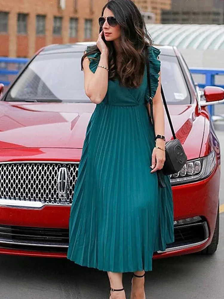 Special Offer Vestido elegante sin mangas de verano para mujer vestido plisado de línea A para mujer 2019 Discount 40% Today!