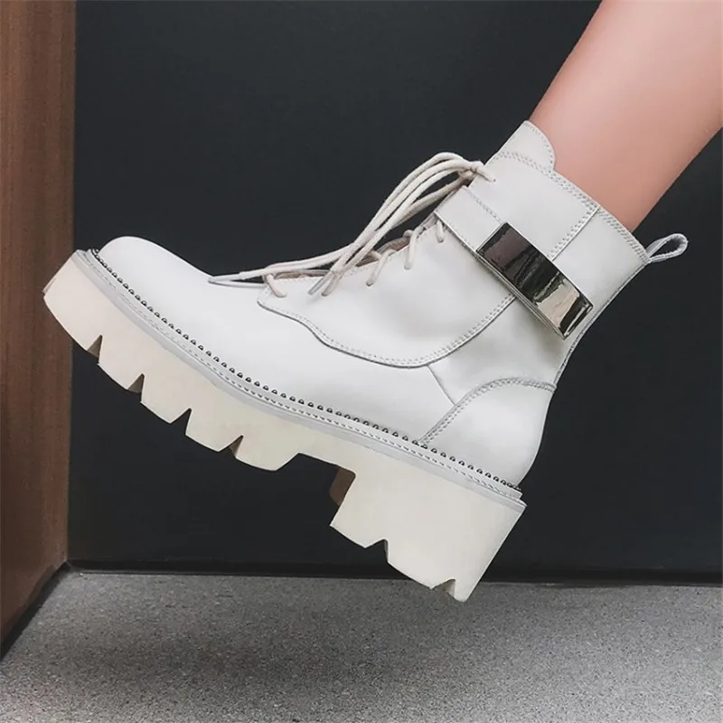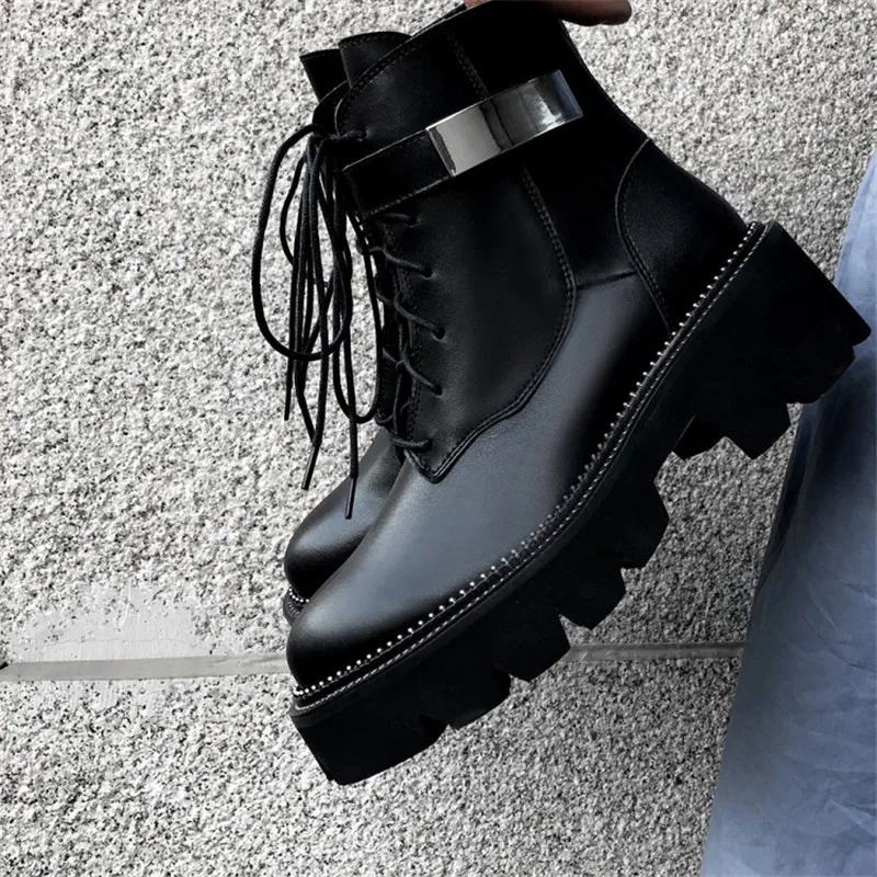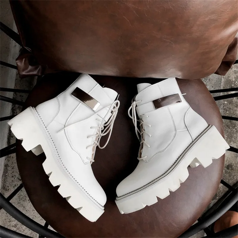 . (44% Off) Comprar Prova Perfetto 2019 botas de cuero genuino zapatos de mujer moto botines de mujer plataforma Otoño Invierno Botas de lluvia Online Baratos.