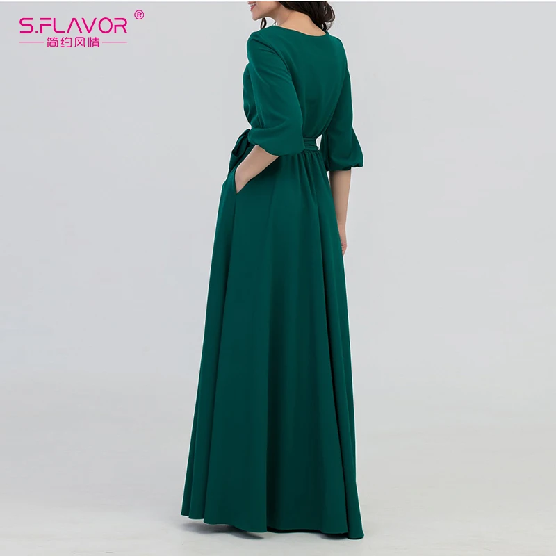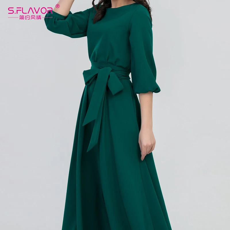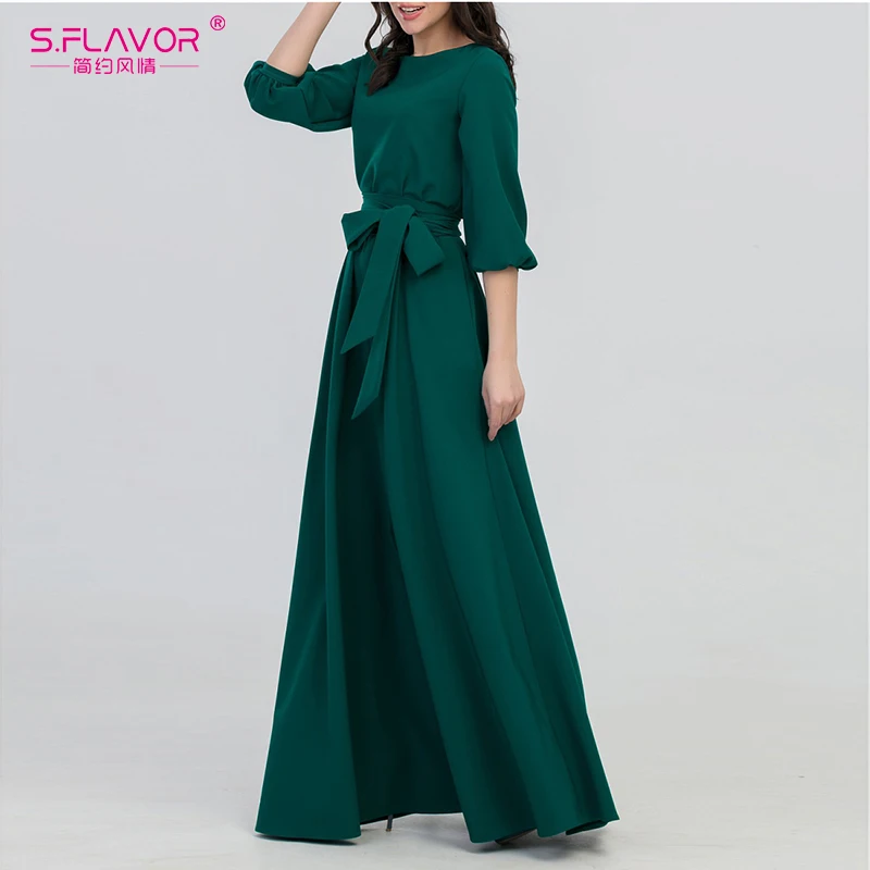 Special Offer S.FLAVOR Otoño Invierno mujer cuello redondo vestido largo estilo bohemio Delgado vestidos vintage tres cuartos linterna manga vestido casual Discount 47% Today!
