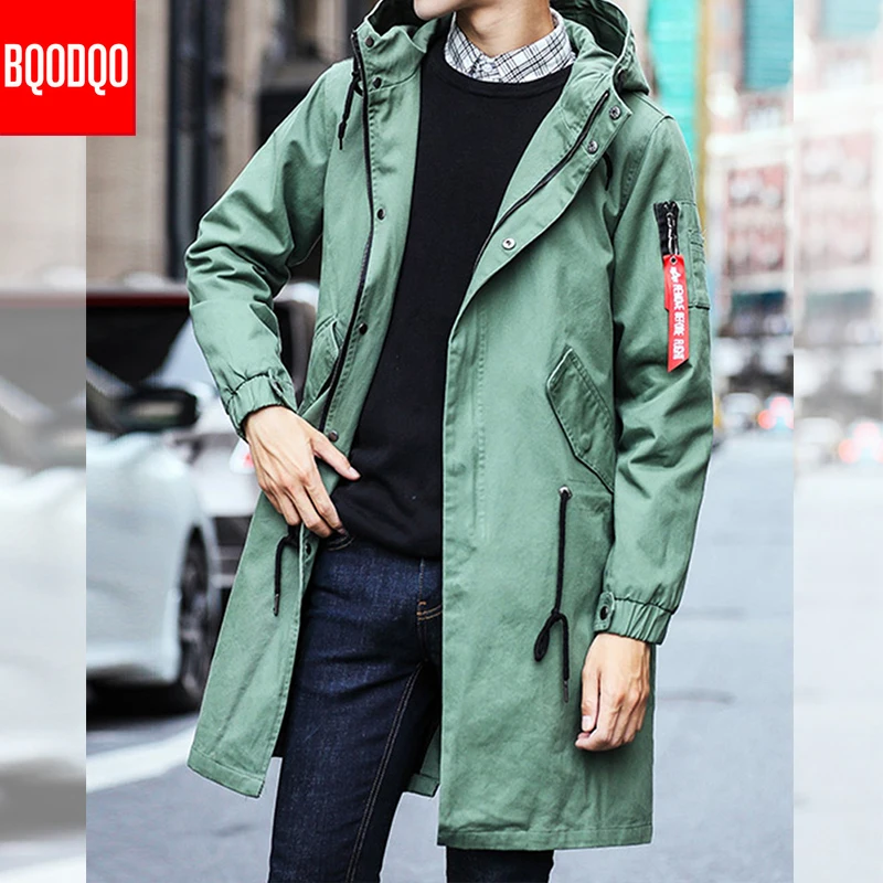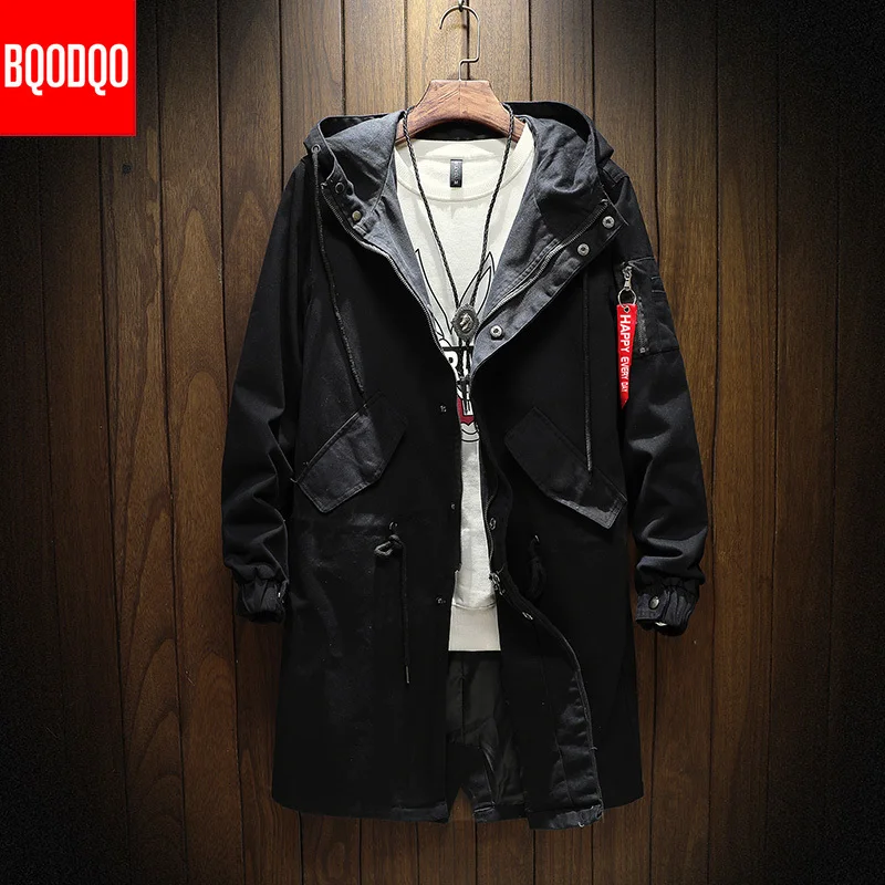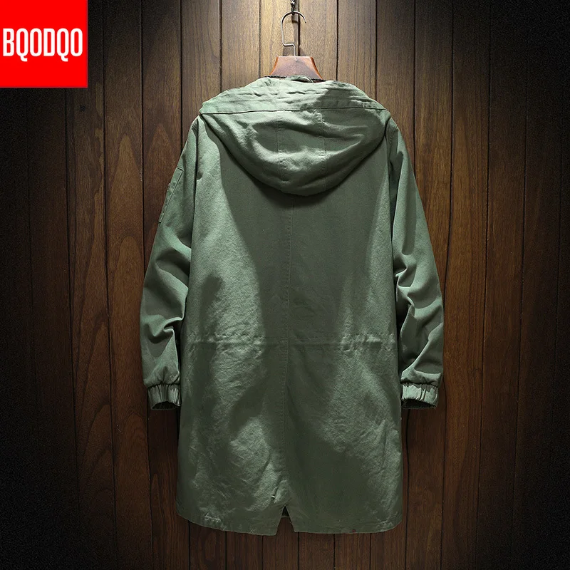 Special Offer Gabardina larga Chaqueta de algodón para hombre otoño primavera negro Hip Hop abrigos japoneses Streetwear verde militar con capucha chaquetas Casuales Discount 56% Today!