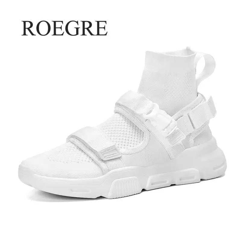 Special Offer Zapatillas de deporte altas para hombre, calcetines transpirables de punto superior para hombre, zapatillas blancas y negras de nueva moda 2019, zapatos informales para hombre Discount 0% Today!