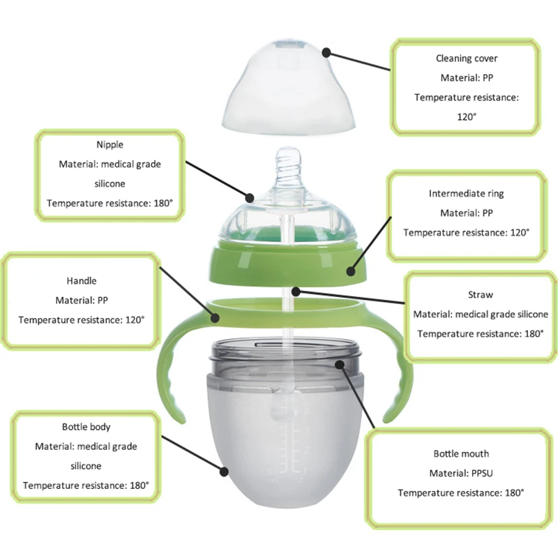 . (15% Off) Comprar Biberón de 4 estilos, biberón de gran calibre, biberón de silicona antiflatulencia con mango, suministros para bebés, herramientas de alimentación de leche para niños Online Baratos.