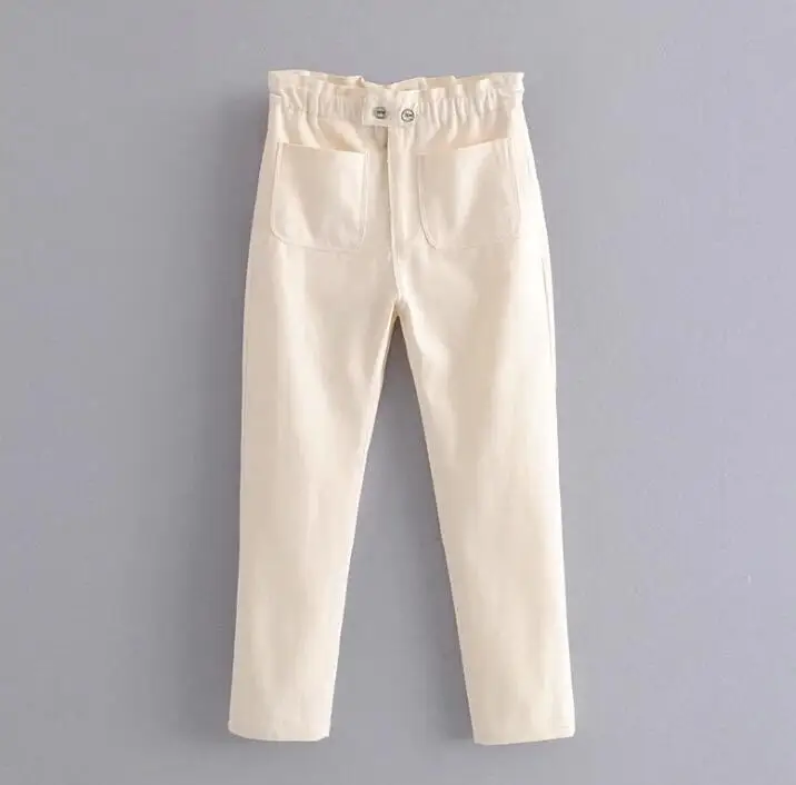 Special Offer 2019 Vintage blanco negro Jeans cintura alta pantalones vaqueros primavera verano Mujer pantalones vaqueros botón mosca tobillo longitud Discount 22% Today!