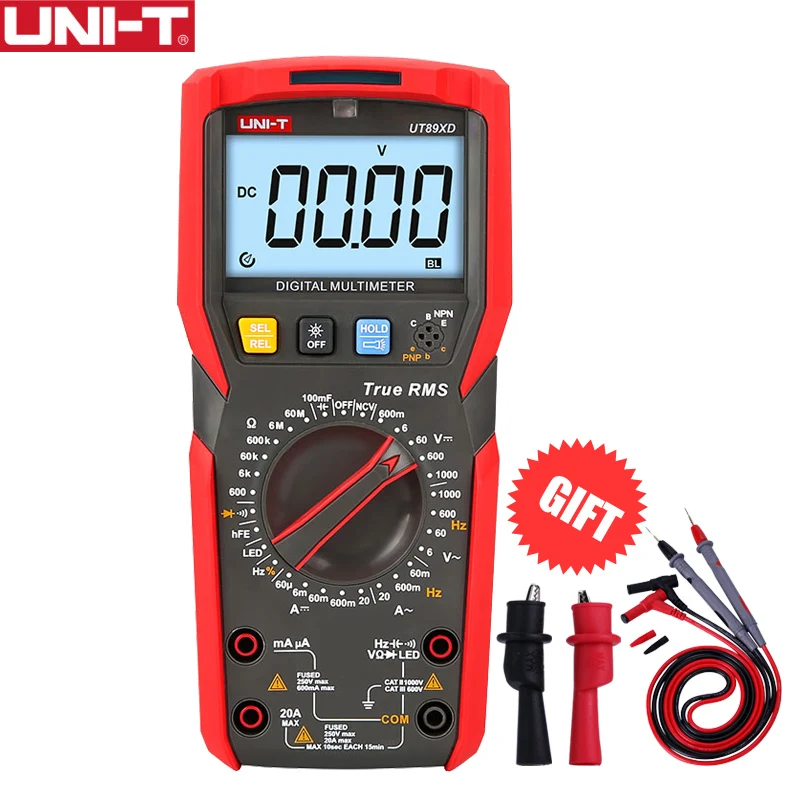 . (25% Off) Comprar UNI T multímetro Digital UT89XD verdadero probador de RMS amperímetro de voltímetro CA CC 1000V 20A capacitancia resistencia de frecuencia medida LED Online Baratos.