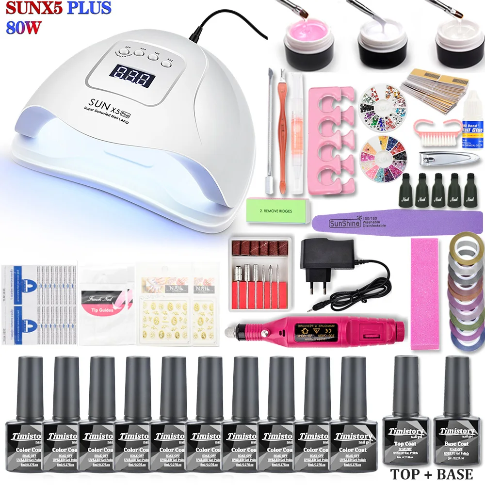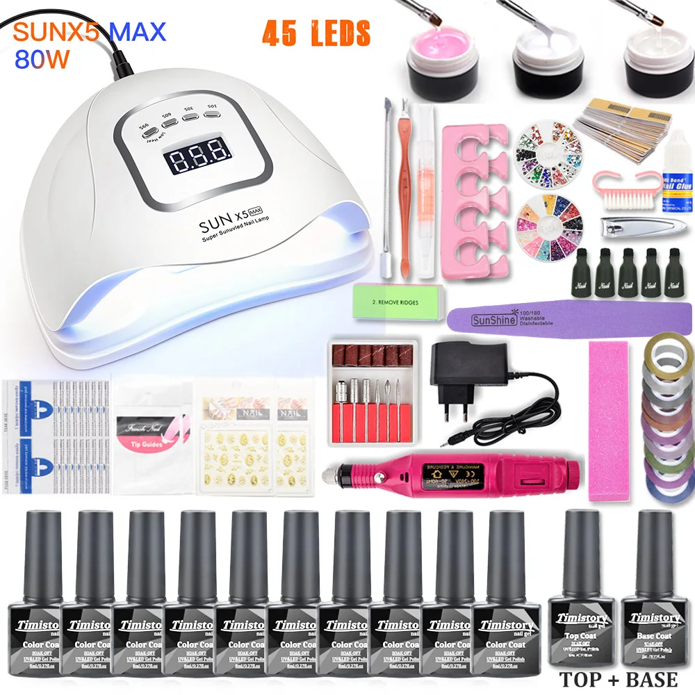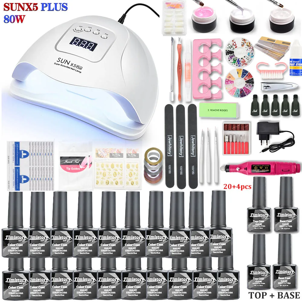 Special Offer Jewhiteny 80W juego de Arte de uñas UV LED secador de lámpara y 16 20 esmalte de uñas de Gel de colores set kit de herramientas de uñas Gel esmalte para manicura kit de herramientas Discount 30% Today!