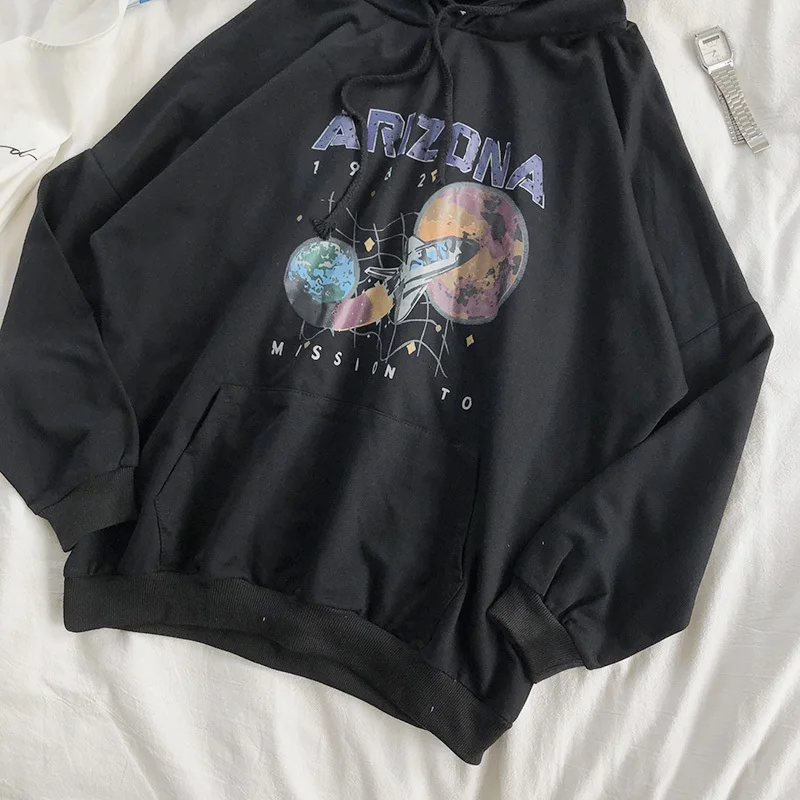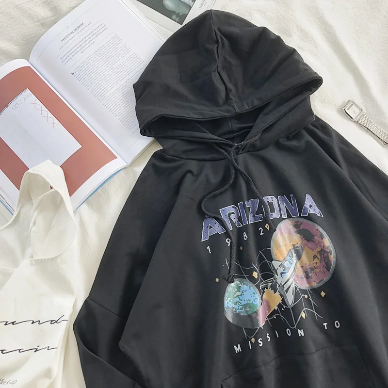 Special Offer Mooirue mujer suelta restaura Star Airship impresión negro Delgado pulóver cuello redondo Hoddie sudadera niñas sudaderas con capucha grises blancas Discount 35% Today!