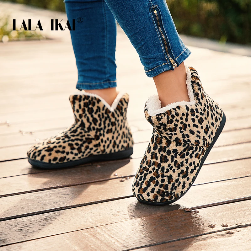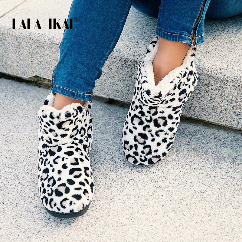 Special Offer LALA IKAI de invierno para mujer zapatos de tobillo botas cortas de lana de algodón antideslizantes botas de leopardo mantener caliente botas de nieve casuales XWA5992 4 Discount 40% Today!