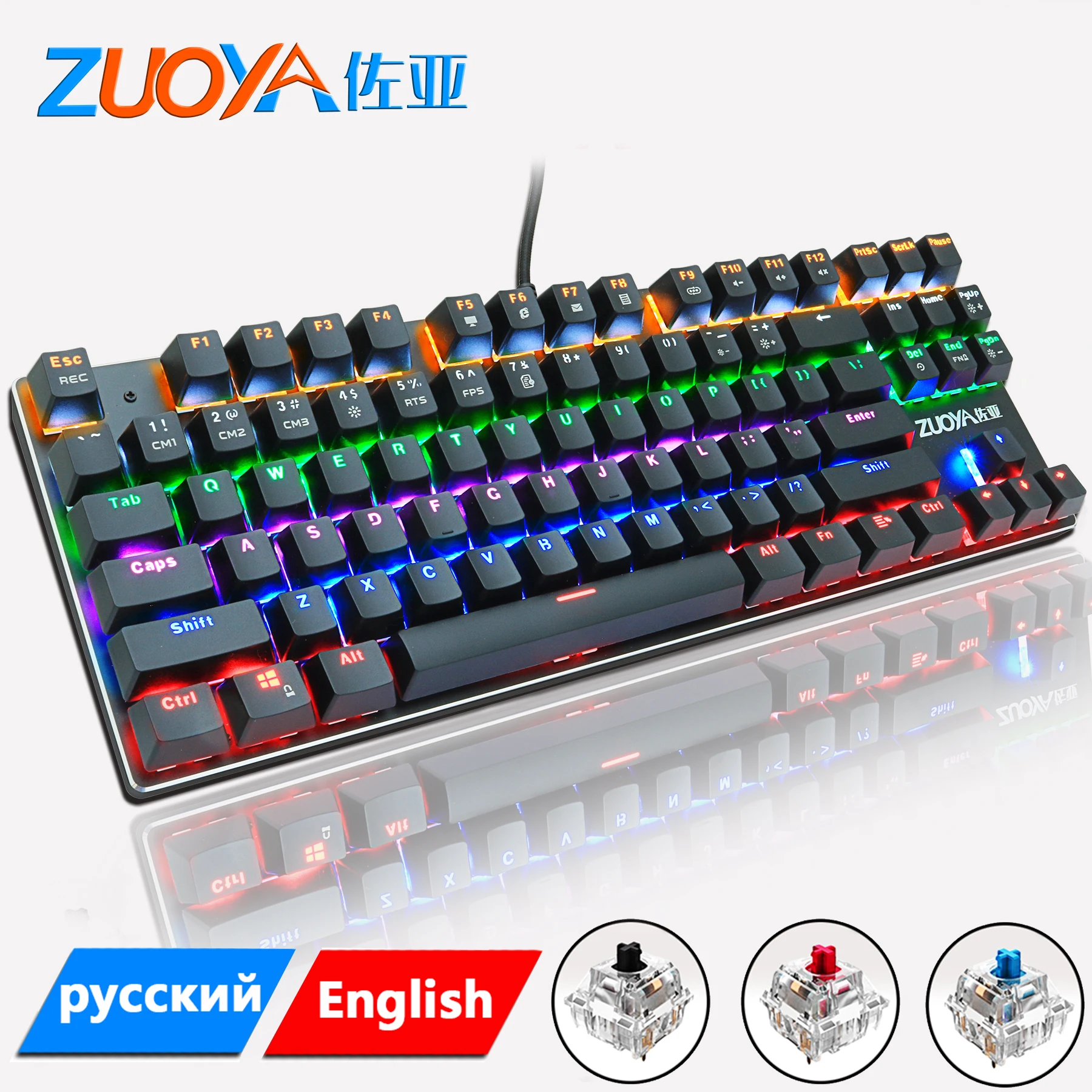 Special Offer Teclado mecánico del juego de ZUOYA LED retroiluminado interruptor azul rojo Negro teclado para juegos con cable ruso Inglés para ordenador portátil Discount 41% Today!