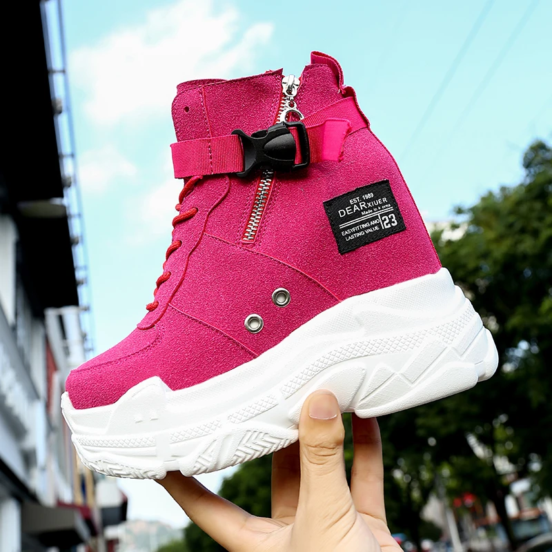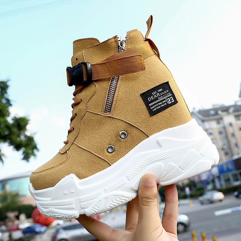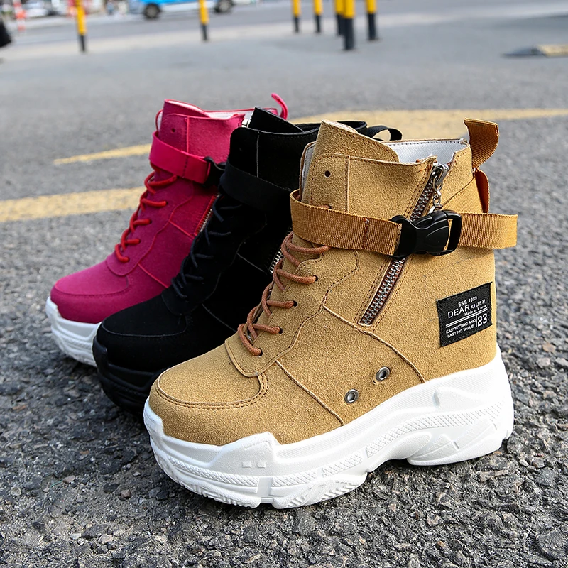 Special Offer Primavera otoño mujer Botines 2019 zapatos con plataforma para mujer 11CM tacones altos interior altura aumento botas de ante sintética zapatillas Discount 42% Today!