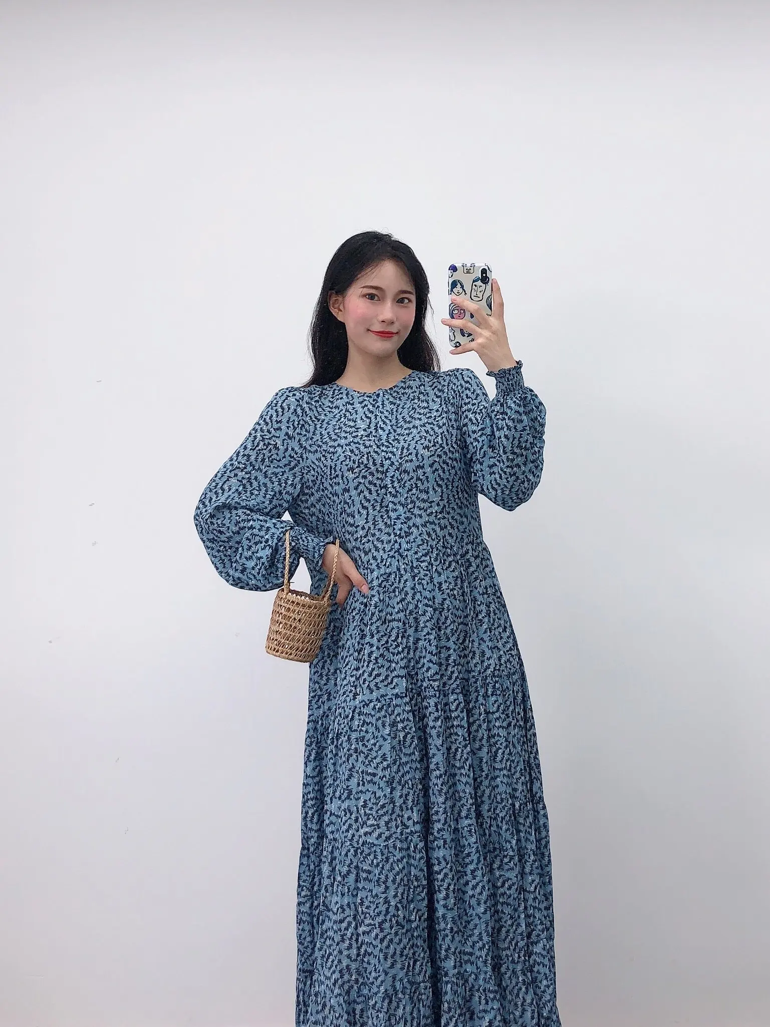 Special Offer Vintage bohemio azul Floral maxi Vestido Mujer otoño robe mujer Retro manga larga suelta vestido plisado Vestidos Coreanos Discount 42% Today!