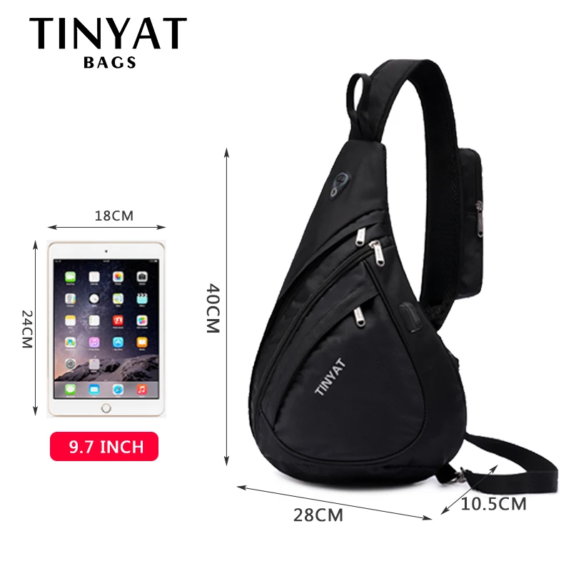 Special Offer TINYAT nuevo hombre Sling bolso bandolera antirrobo para 9,7 almohadilla de carga USB impermeable de viaje bolsa de pecho Casual Discount 58% Today!