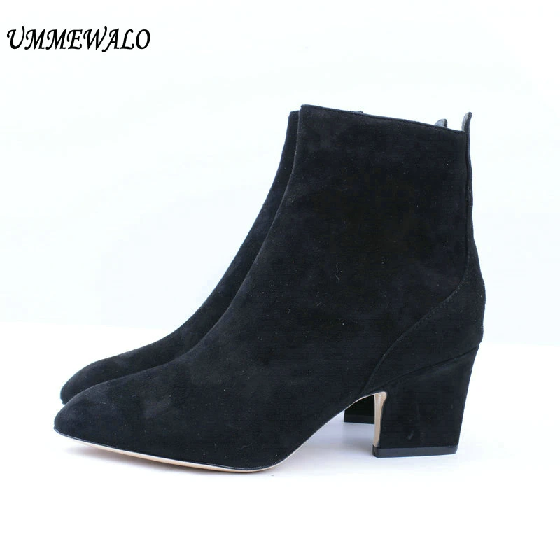 Special Offer Botas UMMEWALO botas de tacón alto de cuero de gamuza para mujer zapatos casuales de otoño invierno botas de Punta puntiaguda botas mujer Discount 10% Today!