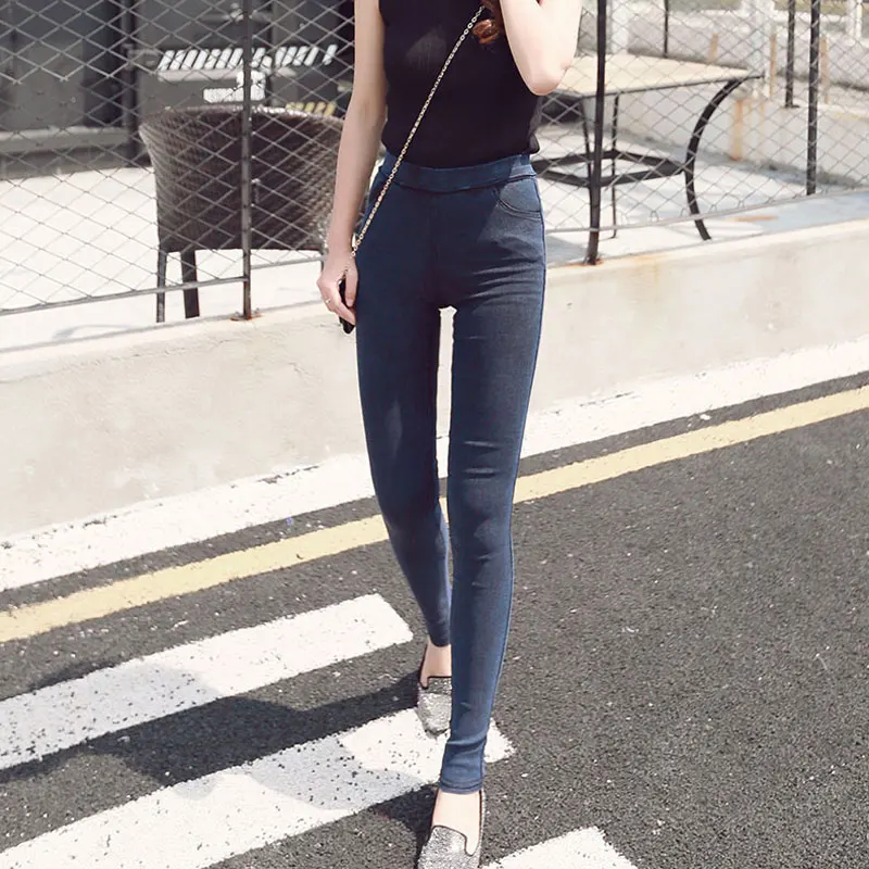 . (16% Off) Comprar BIVIGAOS moda mujer Casual ajustado estiramiento mallas de tejido vaquero Jeggings lápiz pantalones delgados Leggings Jeans ropa de mujer Online Baratos.