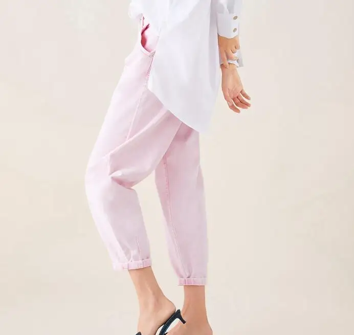 Special Offer 2019 pantalones vaqueros rosas de cintura alta pantalones Harem vaqueros novio para mujer Pantalones sueltos vaqueros mujer Discount 22% Today!