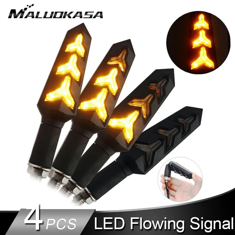 . (25% Off) Comprar Luces intermitentes LED de 4 Uds para motocicleta, luces intermitentes con flujo de agua, lámpara con indicador intermitente trasero automático flexible Online Baratos.
