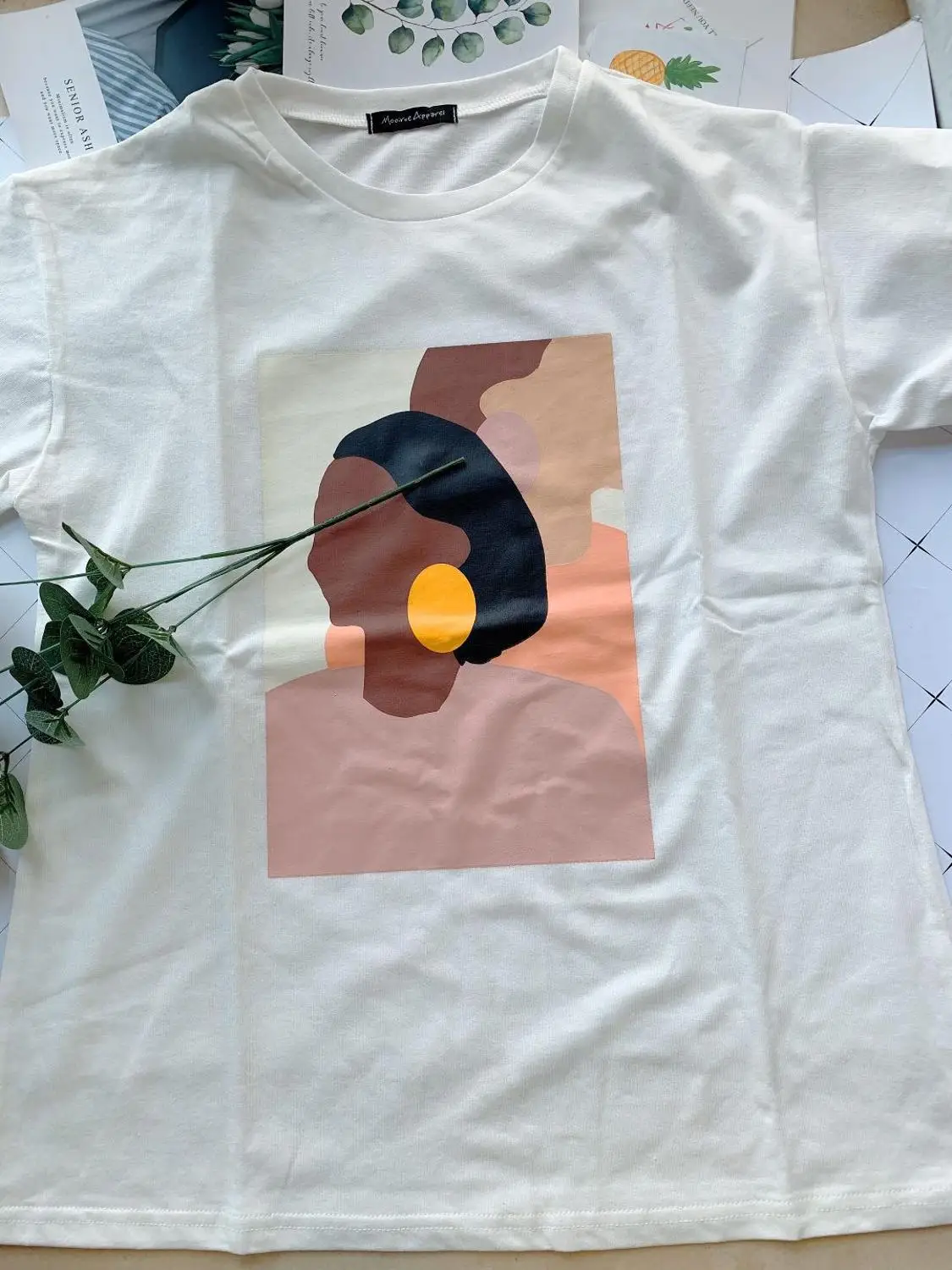 Special Offer Harajuku camiseta mujer Vintage pintura abstracta delgada cuello redondo Camiseta camisetas Vintage suelta Casual Streetwear camiseta Mujer Discount 30% Today!