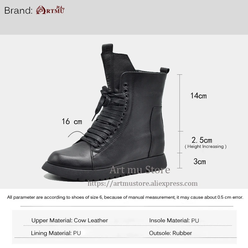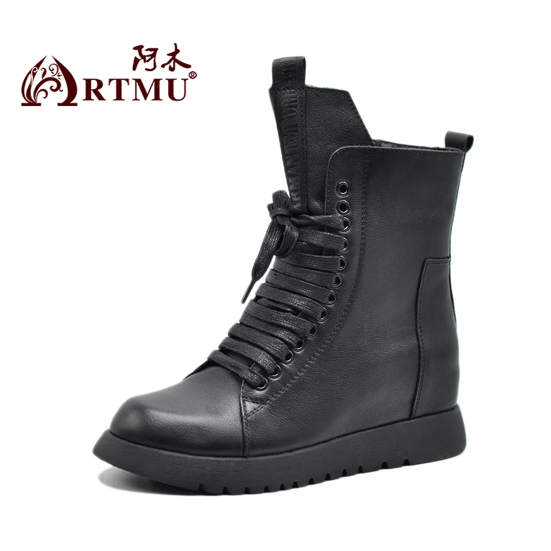 Special Offer Artmu originales 2019 nuevos cómodos zapatos de mujer de altura creciente botas de cuero de ocio para niñas botas Martin negro 6619 Discount 34% Today!