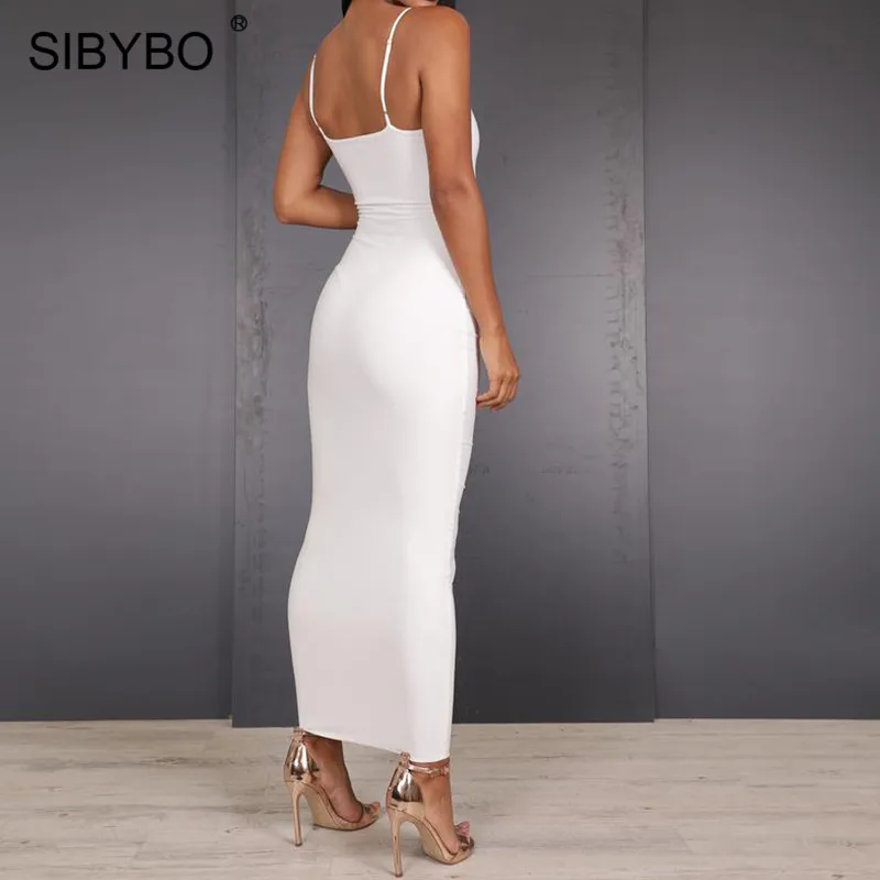 Special Offer Sibybo Spaghetti Correa verano Maxi Vestidos para mujeres sin mangas cremallera Sexy vestido largo mujeres sin espalda Club vestido de fiesta playa Discount 40% Today!
