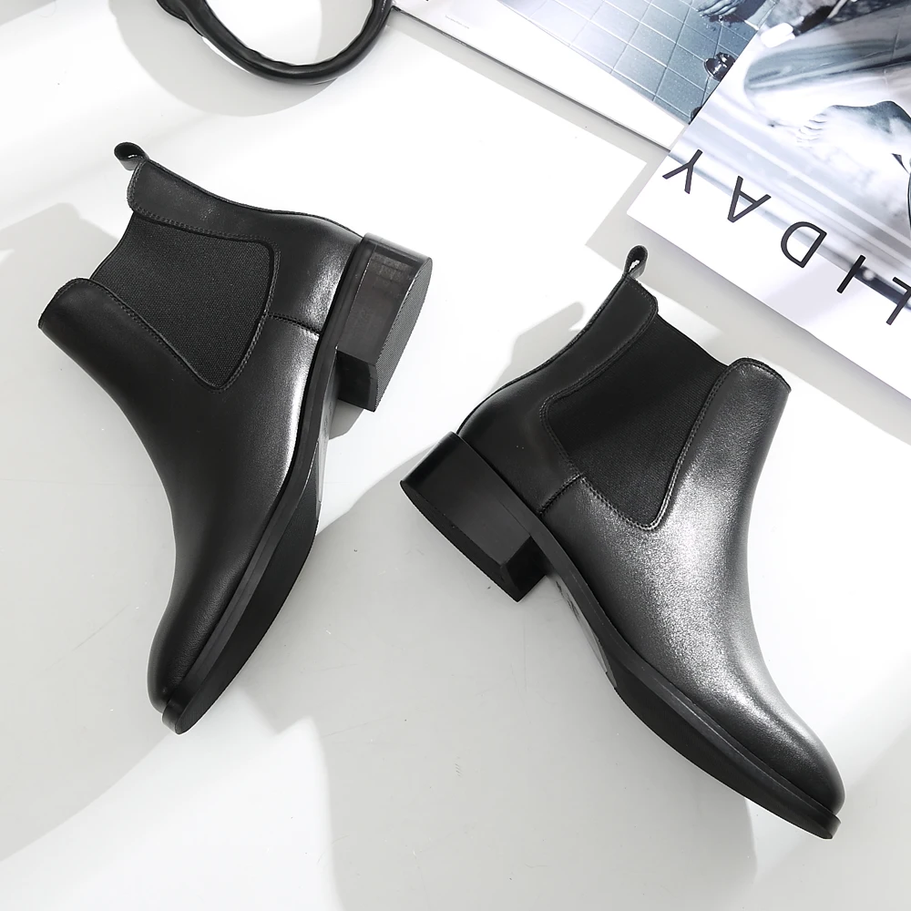 Special Offer Donna in botas de mujer 2019 botas de cuero genuino de Chelsea botas de tobillo hechas a mano marca zapatos gruesos de punta cuadrada para mujer tamaño de peluche Discount 50% Today!