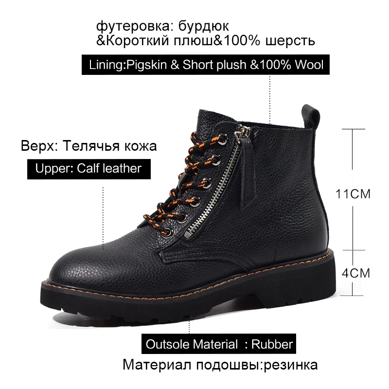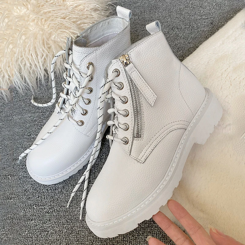 Special Offer Donna in de lana abrigada para mujer botas de tobillo Otoño Invierno zapatos de plataforma con cordones de cuero genuino blanco Matin botas de nieve con piel femenina Discount 50% Today!