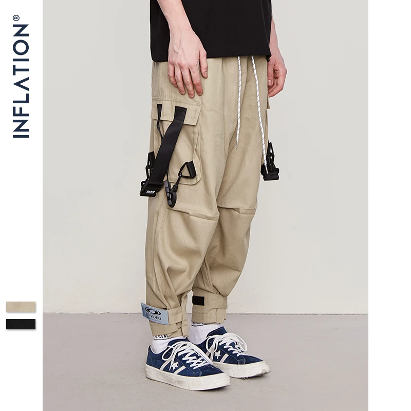 Special Offer INFLATLION suelto ajuste elástico cintura Cargo pantalones calle tobillo Banded pantalones grandes bolsillos pantalones casuales pantalones Cargo de moda 8884W Discount 50% Today!