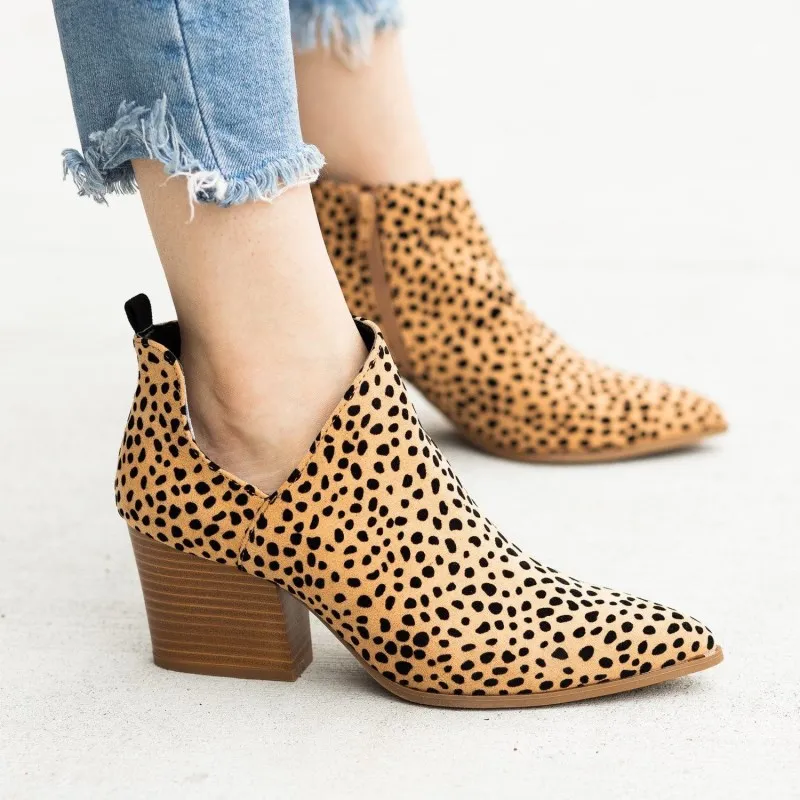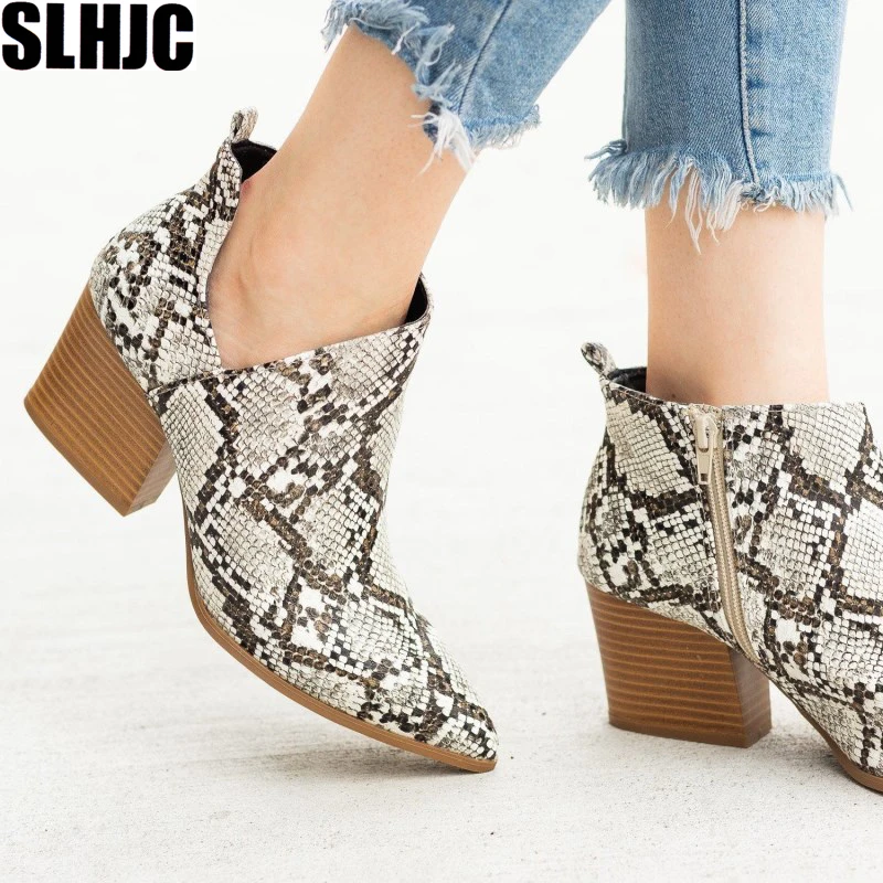 Special Offer SLHJC 2019 botas de cuero de otoño botas de leopardo de estilo Retro de tacón alto punta puntiaguda lateral v Slit más zapatos de tacón Discount 50% Today!